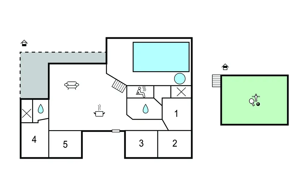 Verbringen Sie erholsame Tage in diesem großzügigen Ferienhaus, das Ihnen Ruhe, Komfort und eine herrliche Aussicht bietet. Treten Sie ein und genießen Sie die lichtdurchfluteten Räume mit hohen Decken und großen Fenstern, die den Blick auf die umliegende Landschaft bis zum Wasser freigeben. Machen Sie es sich im gemütlichen Wohnbereich mit Sofas bequem und genießen Sie gemeinsame Stunden bei Spielen oder einem guten Film. Bereiten Sie Mahlzeiten in der modernen, offenen Küche zu und essen Sie am großen Esstisch mit Platz für alle. Das Haus bietet außerdem ein besonderes Highlight: einen eigenen Innenpool, in dem Sie unabhängig vom Wetter schwimmen können, sowie eine Sauna und einen Whirlpool für entspannte Stunden. Es erwartet Sie zusätzlich ein kleiner Aktivitätsbereich mit Tischkicker und Sitzecke – ideal für Kinder oder gesellige Abende.