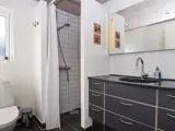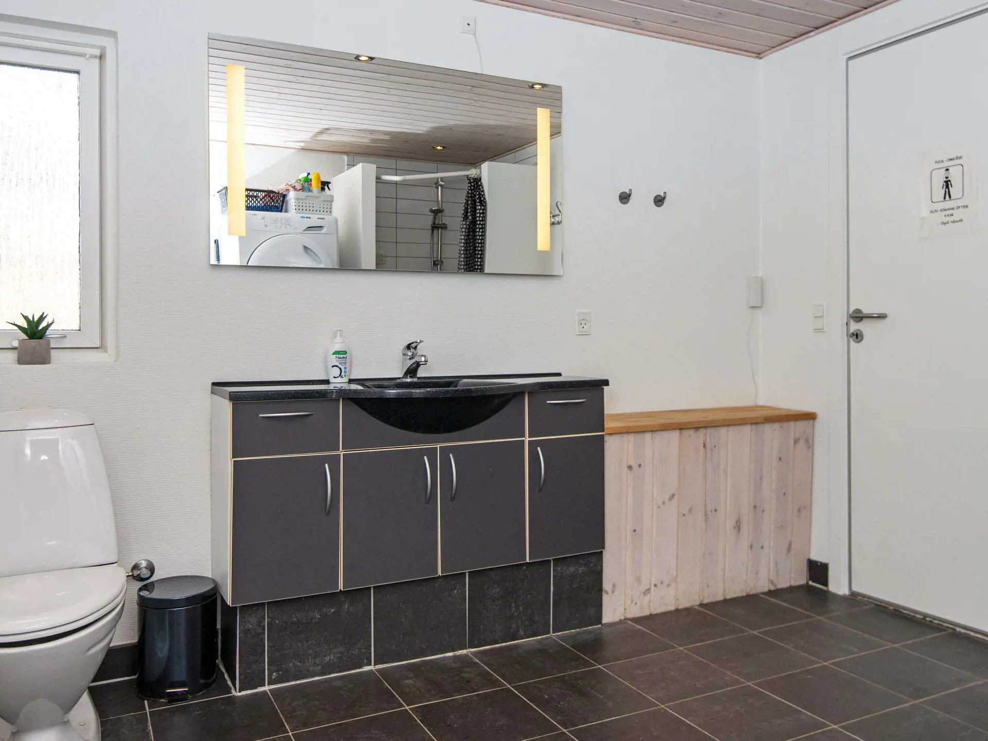 Es gibt zwei Bäder im Haus, beide mit Toilette, Waschbecken, Dusche und Fußbodenheizung. Zur weiteren Ausstattung gehören eine Waschmaschine und ein Wäschetrockner sowie in der Küche u.a. Ceranfeldherd, Mikrowelle und Geschirrspüler.
