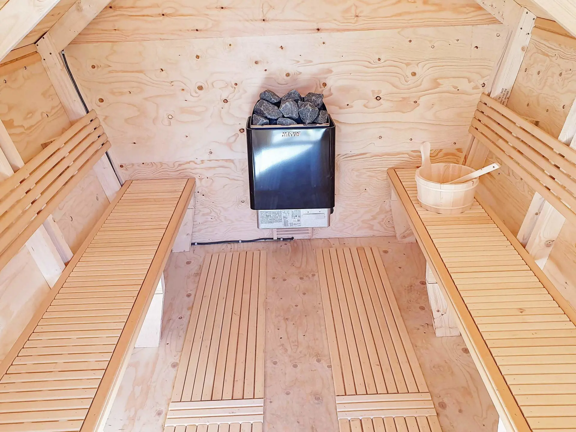 Das Ferienhaus hat zwei Schlafzimmer; eines mit Doppelbett, das zweite mit zwei Einzelbetten. Außerdem steht nebenan auf dem Grundstück ein separater Annex mit einem Etagenbett mit zwei Kojen sowie einer 120x200 cm Doppelliege. Hierhin können sich z.B. die Teenager der Familie zurückziehen.