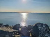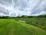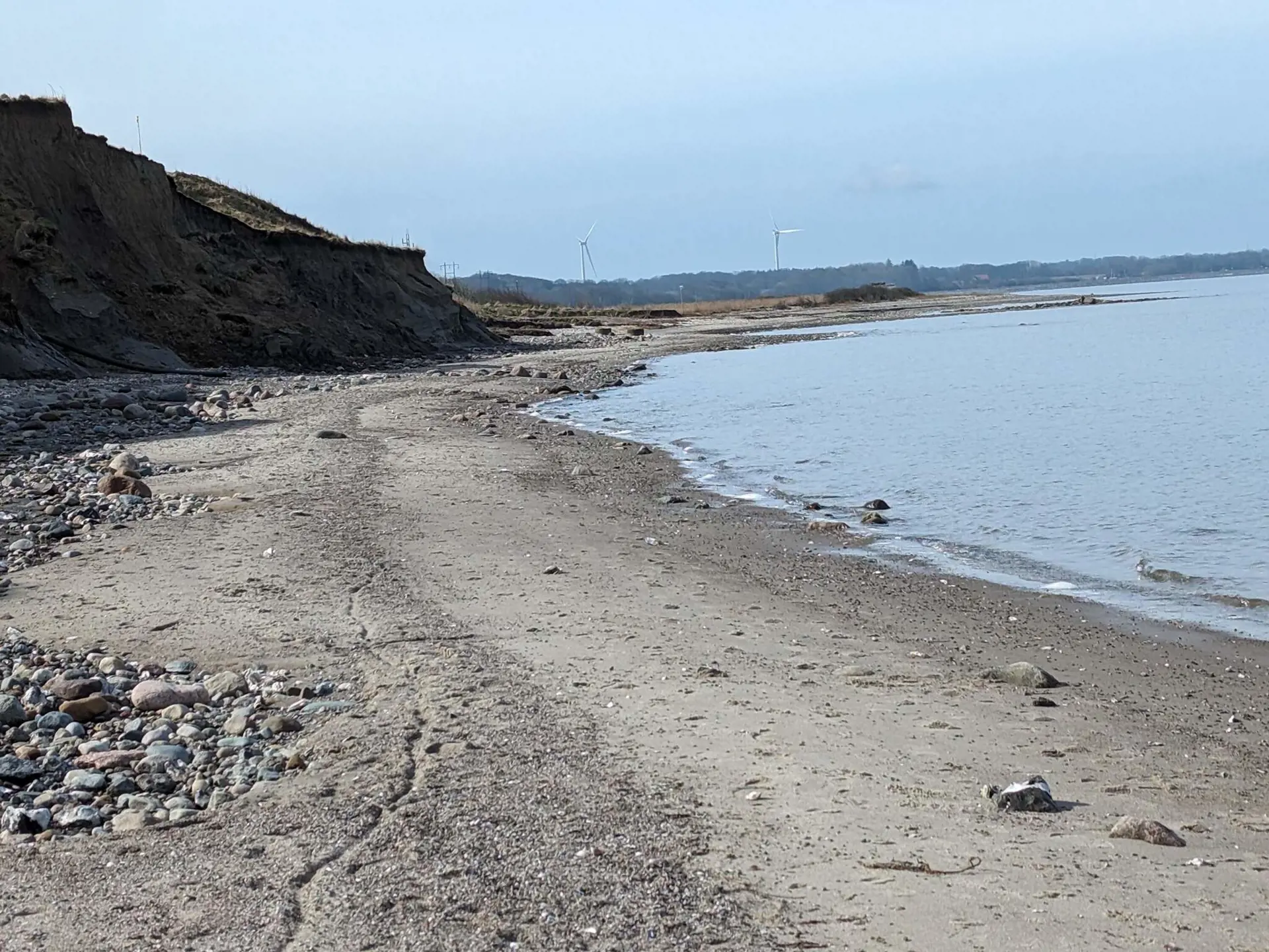 Ferienhaus nur etwa 500 m Luftlinie vom Ufer des Limfjordes entfernt. Gleich nebenan befindet sich eine große Gemeinschaftsfläche mit Spielplatz, Petanquebahn sowie Tischen und Bänken. Die teils überdachte Terrasse des Hauses liegt jedoch in entgegengesetzter Richtung und bietet so ausreichend Privatsphäre.
