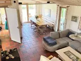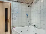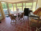 Schöner Außenbereich mit teilweise überdachter Terrasse mit langem Tisch, Grill und verschiedenen Außenspielen. Gemütliches und geräumiges Haus. Wintergarten mit Schlafsofa und rundem Tisch und Stühlen. Badezimmer mit Toilette und Dusche. Extra Bad mit Dusche, Whirlpool, Waschmaschine und Zugang zur Sauna. Wohnzimmer mit Holzofen und langem Tisch. In Verbindung mit dem Wohnzimmer gibt es einen Hems oben auf dem Dachboden mit zwei Schlafplätzen und Zugang über eine Treppe. Zweiter Hems mit zwei Schlafplätzen und Zugang über eine Leiter.