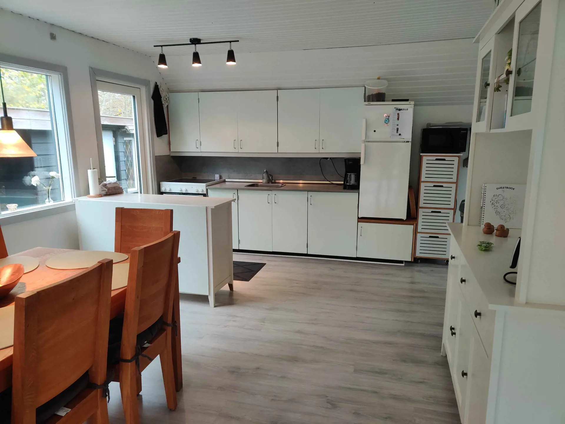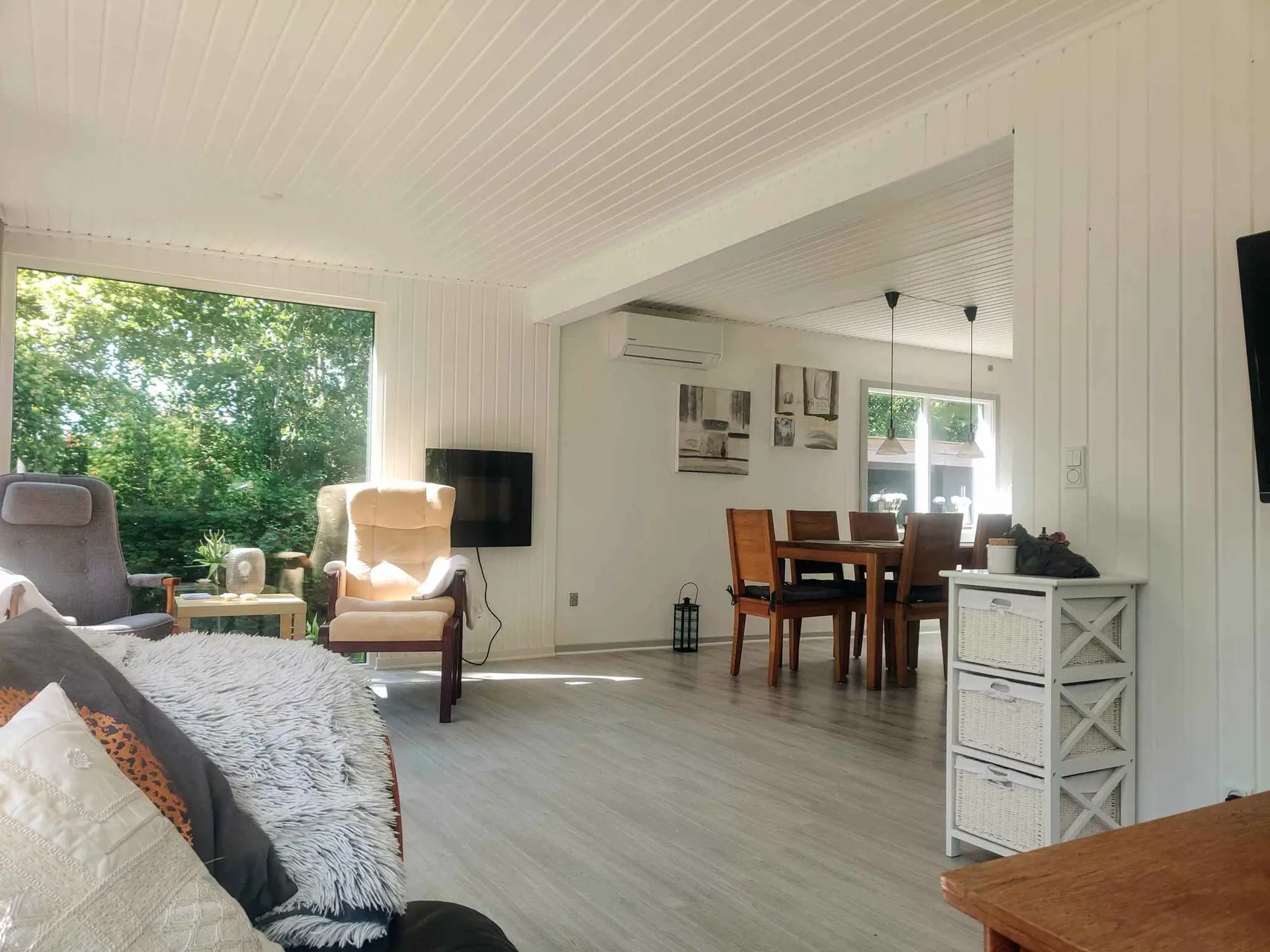 Das große, gemütliche Eckwohnzimmer bietet die Möglichkeit für sowohl Gemütlichkeit als auch Gemeinschaft - ob Sie auf dem Sofa sitzen und entspannen oder am großen Esstisch Spiele spielen oder köstliche Feriengerichte genießen möchten. Oder Sie können einfach sitzen und den Garten durch die großen Fenster genießen, wo Sie einen Logenplatz zur reichen Tierwelt haben, die Kramnitze auch bietet.