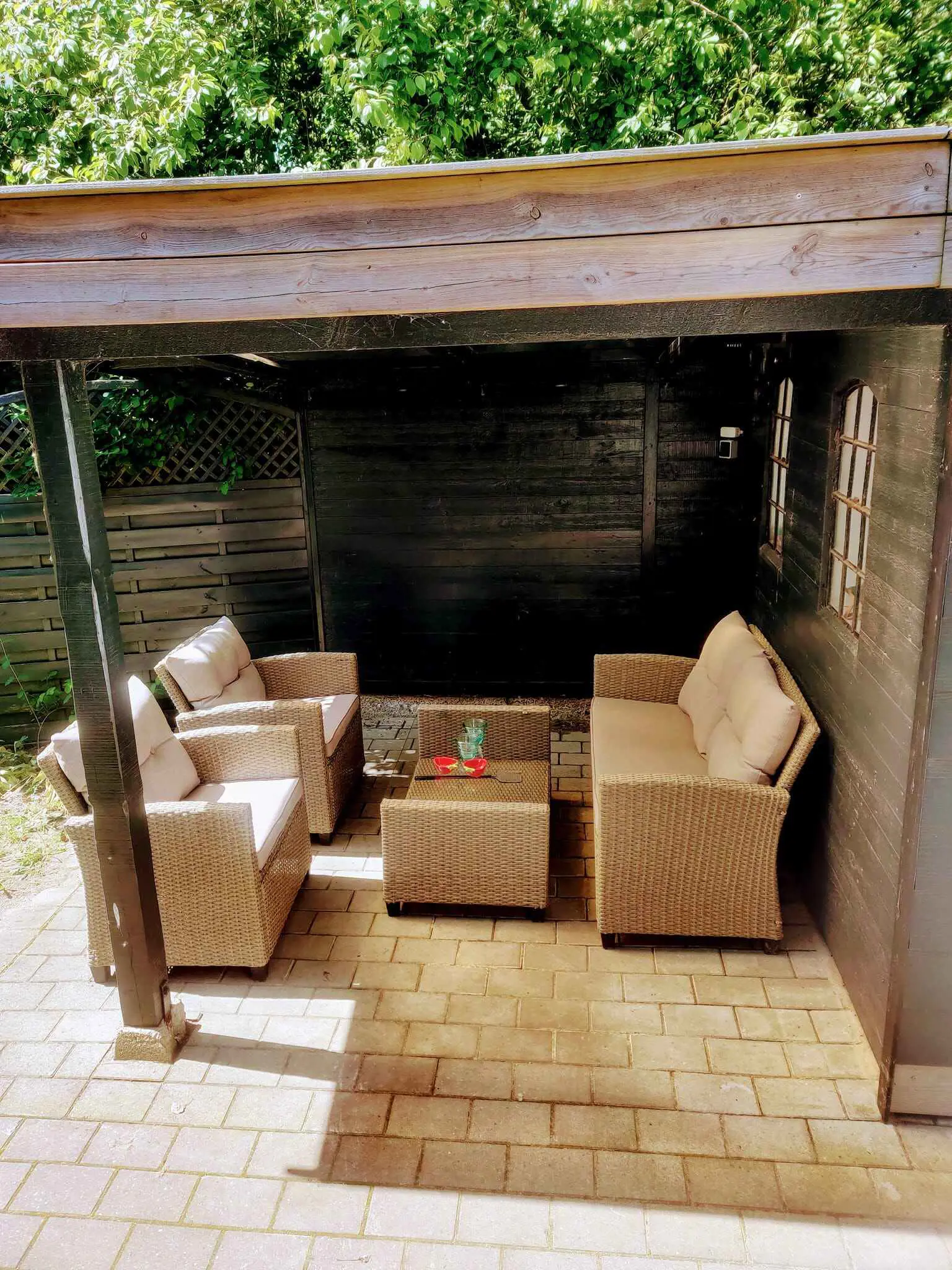 Das schöne Wetter kann auch auf der großen südseitigen Terrasse genossen werden. Hier gibt es Platz zum Essen und Sonnenbaden, aber es gibt auch viel Platz zum Spielen im Garten. Ein Grill steht im Sommerhaus zur Verfügung, wenn Sie Lust zum Grillen haben. Zusätzlich zur großen Terrasse gibt es eine kleinere überdachte Terrasse und einen völlig abgeschiedenen Innenhof. Der Garten ist teilweise eingezäunt und Sie können gerne Ihren Hund mitbringen. Er wird sicherlich die Spaziergänge in der wunderschönen Gegend, die Kramnitze bietet, genießen. Bei Ihren Spaziergängen haben Sie die Möglichkeit, Rehe, Fasane und Eichhörnchen zu sehen.