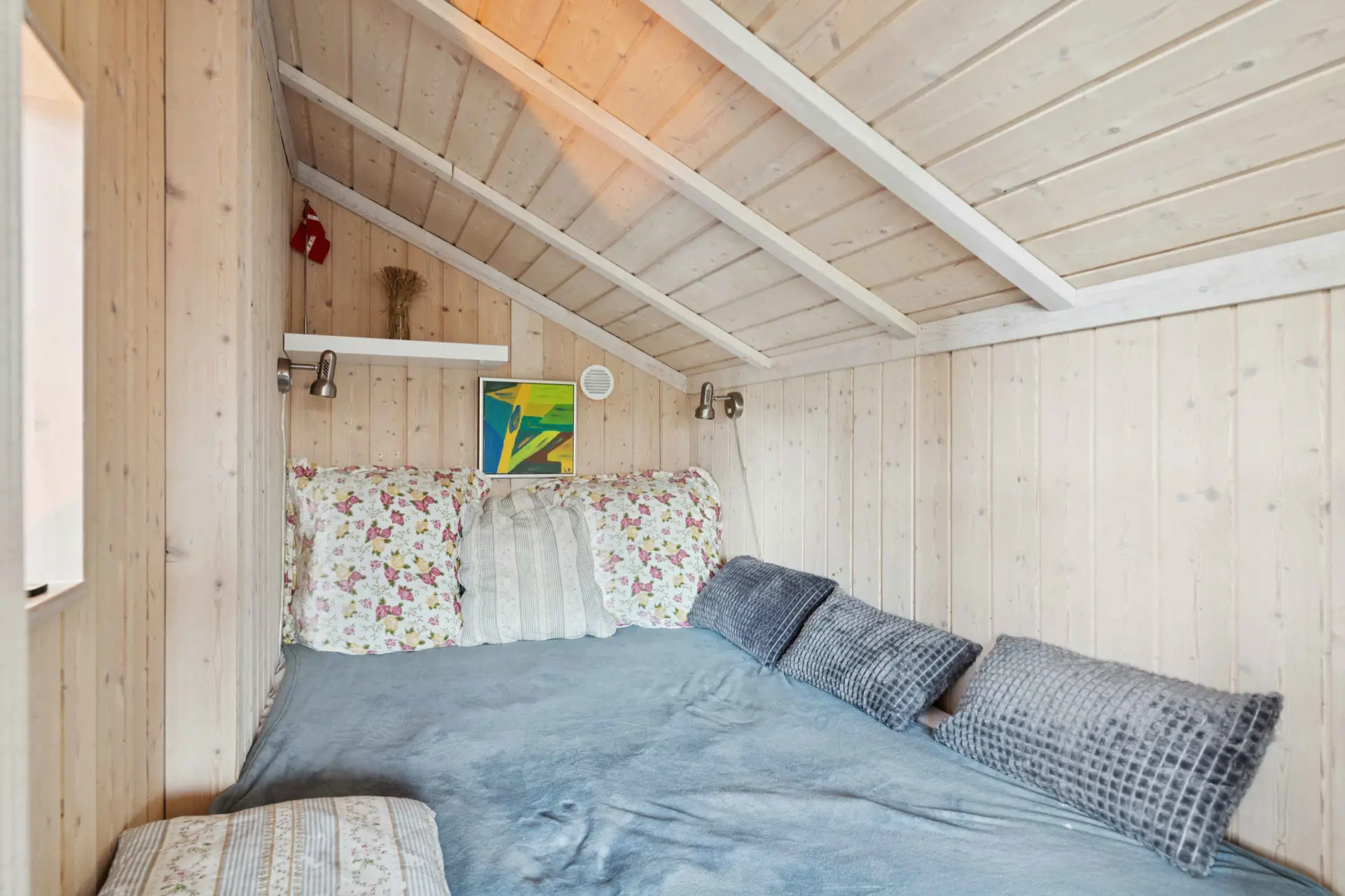 Das Haus verfügt neben der offenen Küche in Verbindung mit dem Wohnzimmer über 2 Zimmer und eine Alkove, die Rückzugsmöglichkeiten bietet. Vom Wohnzimmer aus gelangt man auf den nach Südost ausgerichteten Teil der Terrasse, wo man den Nachmittag und Abend genießen kann; dort steht auch ein Gasgrill.
