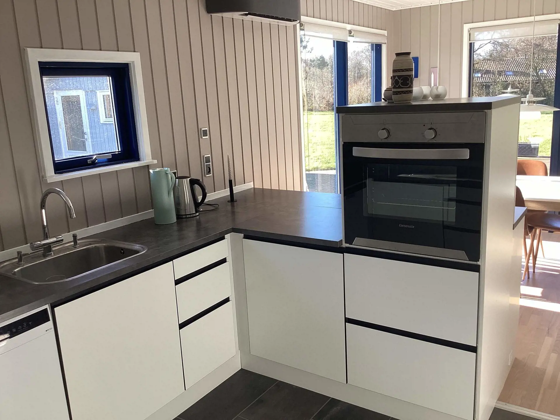 Das Ferienhaus verfügt über drei Schlafzimmer, eines mit Doppelbett, eines mit zwei Einzelbetten und das letzte Zimmer mit einem Etagenbett und einem Doppelbett im Anbau. Die offene Küche ist mit Kaffeemaschine, Induktionsherd, separatem Backofen, Kühlschrank und Geschirrspüler ausgestattet. Im Schuppen gegenüber der Eingangstür befindet sich ein 60-Liter-Gefrierschrank. Das Ferienhaus verfügt über zwei Badezimmer, eines mit Toilette und Waschbecken, das andere mit Toilette, Waschbecken, Dusche, Waschmaschine und Trockner. Das Wohnzimmer verfügt über einen Fernseher mit Chromecast und kostenlosem Internet sowie einen DVD-Player. Vom Wohnzimmer aus gelangt man auf eine halbüberdachte Terrasse und einen großen Garten.
