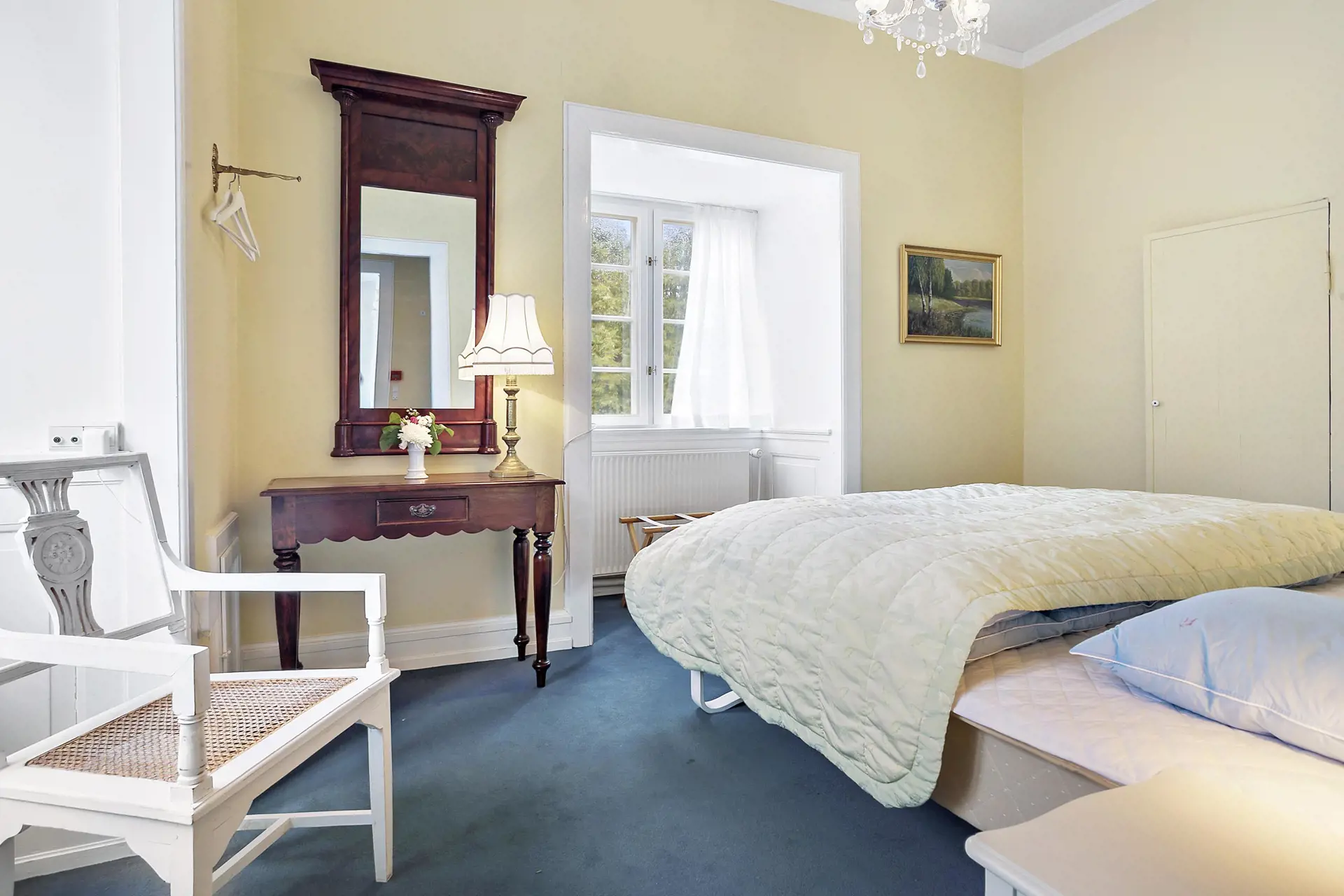 Es wurde gesungen, gespeist und getanzt. Nun ist das Fest vorbei. Alles hat wunderbar geklappt. Das Essen schmeckte. Der Sekt perlte leicht und es wurde viel getanzt. Nun ist es an der Zeit, sich zurückzuziehen, mit einem Kopf, der voller Eindrücke und großer Erlebnisse nur so summt. Für einen Teil Ihrer Festgesellschaft ist dies direkt möglich, da Ihnen Schloss Vindeholme Übernachtungsmöglichkeiten für bis zu 17 Gäste bietet. Diese verteilen sich auf 8 Doppelzimmer und 1 Einzelzimmer. Hinzu gesellen sich 7 Badezimmer, 3 Wohnzimmer, 1 Esszimmer und 2 Küchen. Aufgrund des Interieurs und des schönen, königlichen Service möchte der Eigentümer, dass ein Mitarbeiter / Ansprechpartner vor Ort ist, der für die Einrichtungen und den Service verantwortlich ist. Dies gilt natürlich nur während der Feierlichkeit selbst, nicht jedoch während Ihres restlichen Aufenthalts.