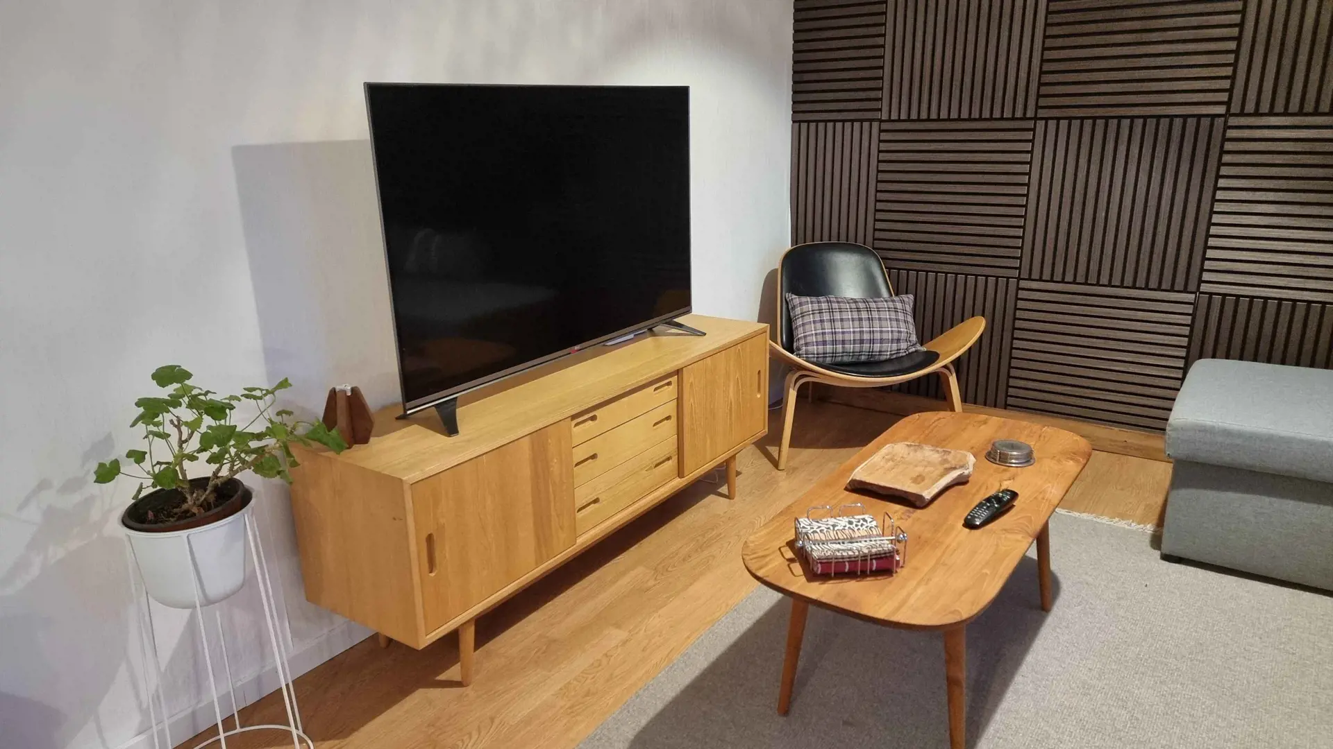 Die Einrichtung ist funktional und einladend. Die großzügigen Wohnbereiche eignen sich perfekt für gemeinsame Mahlzeiten und entspannte Abende, während der Blick auf den Fjord für eine ruhige Atmosphäre sorgt.