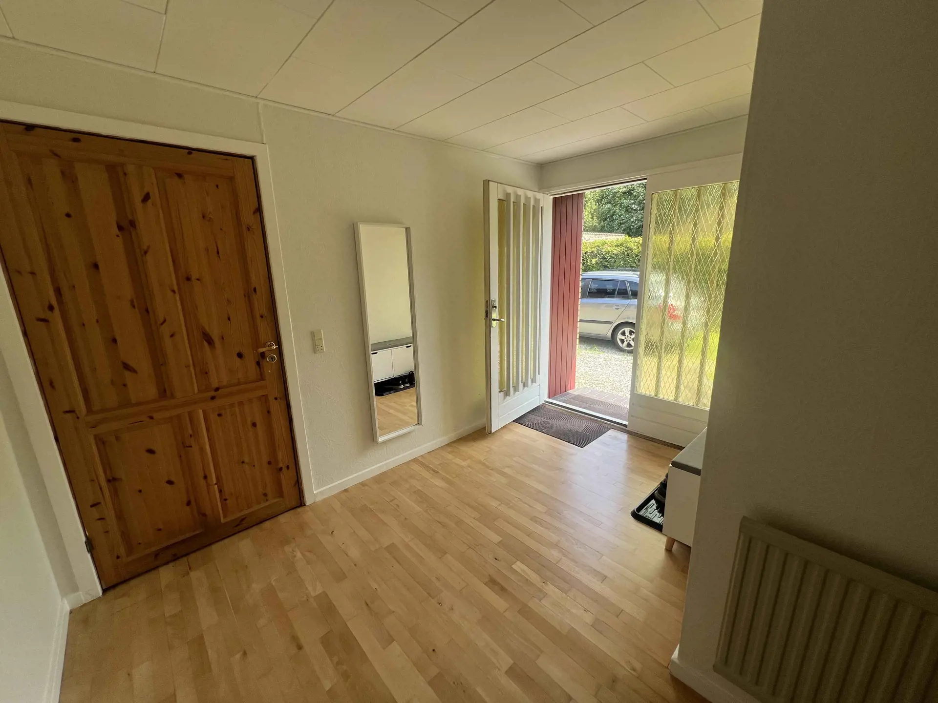 Eine Außenkamera überwacht Eingangs- und Parkplatzbereich.