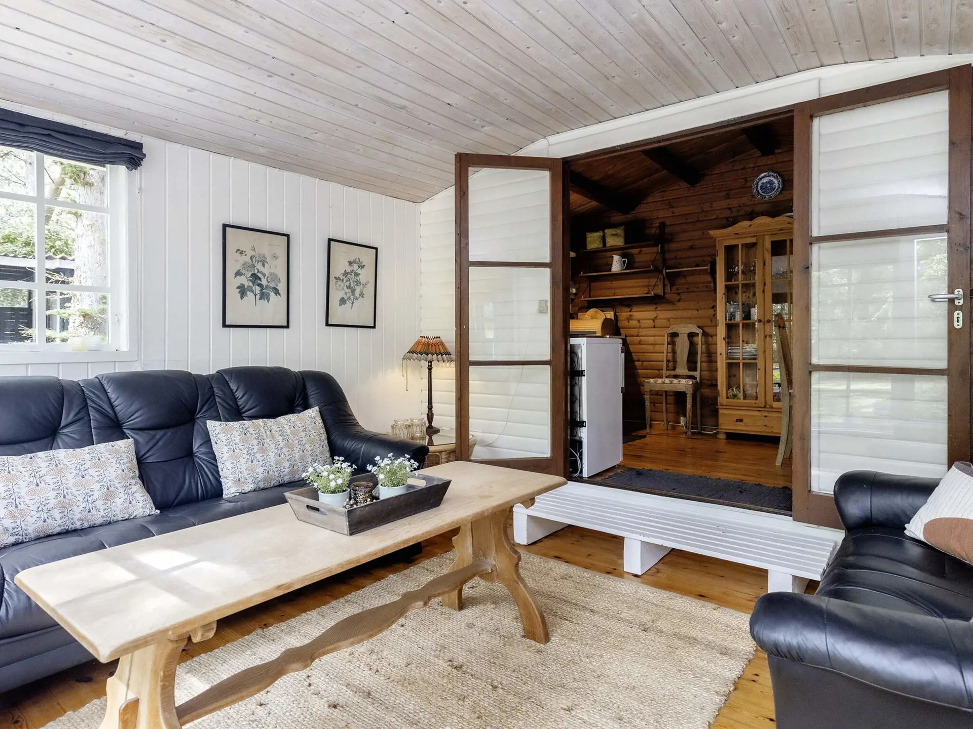 Das Wohnzimmer des Hauses hat große Fenster mit schönem Ausblick zur Natur und Tierwelt. In der Gegend gibt es u.a. Rehe, Fasane, Hasen und eine reiche Vogelwelt.
