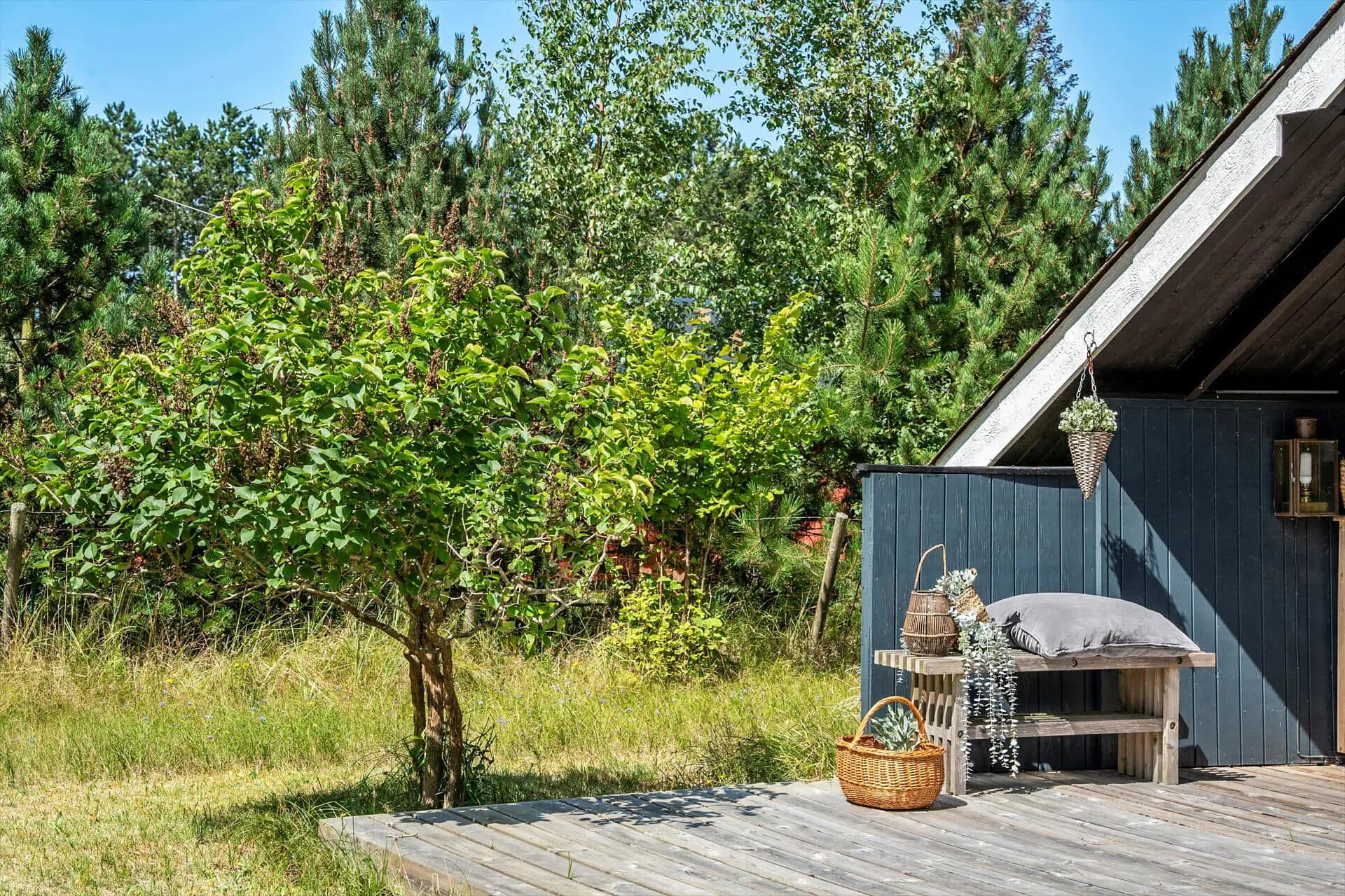 Das Sommerhaus befindet sich auf einem 927 qm großen Grundstück mit viel Platz für Outdoor-Aktivitäten auf der Rasenfläche. Das Haus verfügt über eine schöne Terrasse, die teilweise überdacht ist. Auf der Terrasse befinden sich Gartenmöbel und ein Grill.