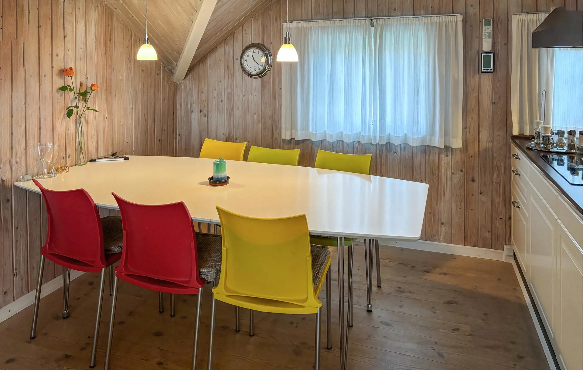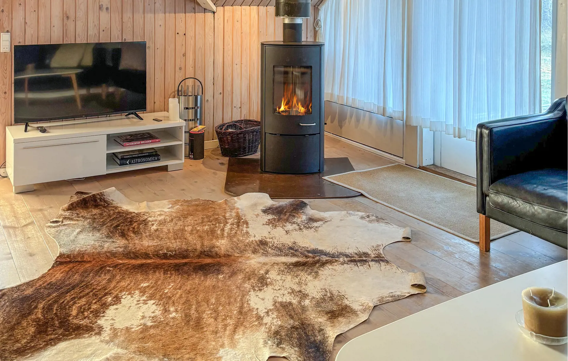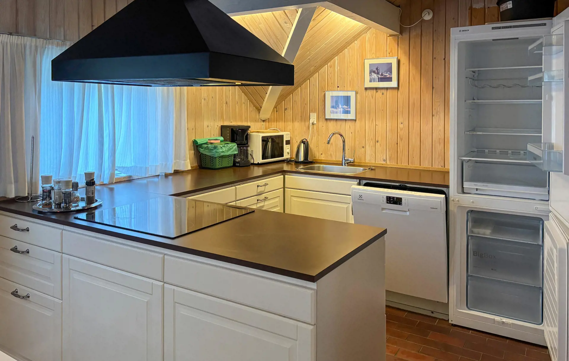 Treten Sie ein und fühlen Sie sich im schön gestalteten Innenbereich sofort willkommen. Nutzen Sie den Wohnraum mit seinen bequemen Sofas und dem Kaminofen für gemütliche Abende. Lassen Sie das Feuer knistern, lehnen Sie sich zurück und genießen Sie die ruhige Atmosphäre. Nehmen Sie am großen Esstisch Platz und servieren Sie hier Ihre gemeinsamen Urlaubsmahlzeiten. Bereiten Sie Ihre Speisen in der offen gestalteten und modernen Küche mit Kochinsel zu und nutzen Sie die großzügigen Arbeitsflächen.