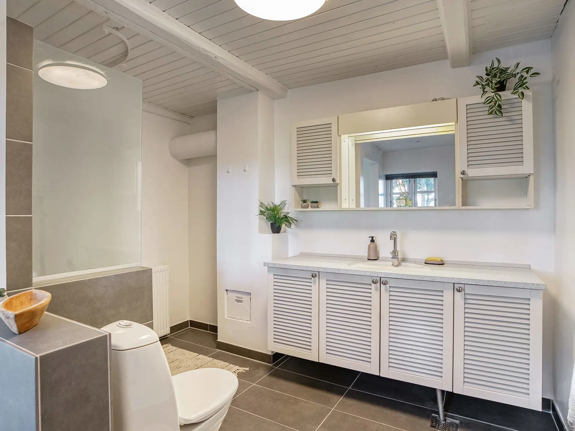 Dieses gemütliche Ferienhaus liegt unweit des idyllischen Kvie-Sees und bietet mit seinem Whirlpool und dem großen, eingezäunten Grundstück ideale Voraussetzungen für einen erholsamen Familienurlaub. Das knapp 900 m² große Grundstück lädt zum Entspannen und Spielen im Freien ein. Das Haus verfügt über drei Schlafzimmer: eines mit einem Doppelbett und einem Einzelbett, ein weiteres mit einem Doppelbett und einem Kinderbett und ein drittes mit zwei Einzelbetten. Der offene Wohnbereich vereint Küche, Essbereich und Wohnzimmer und schafft so eine einladende Atmosphäre für gemeinsame Stunden. Das Badezimmer ist mit einer Whirlpool-Badewanne und Fußbodenheizung für zusätzlichen Komfort ausgestattet.