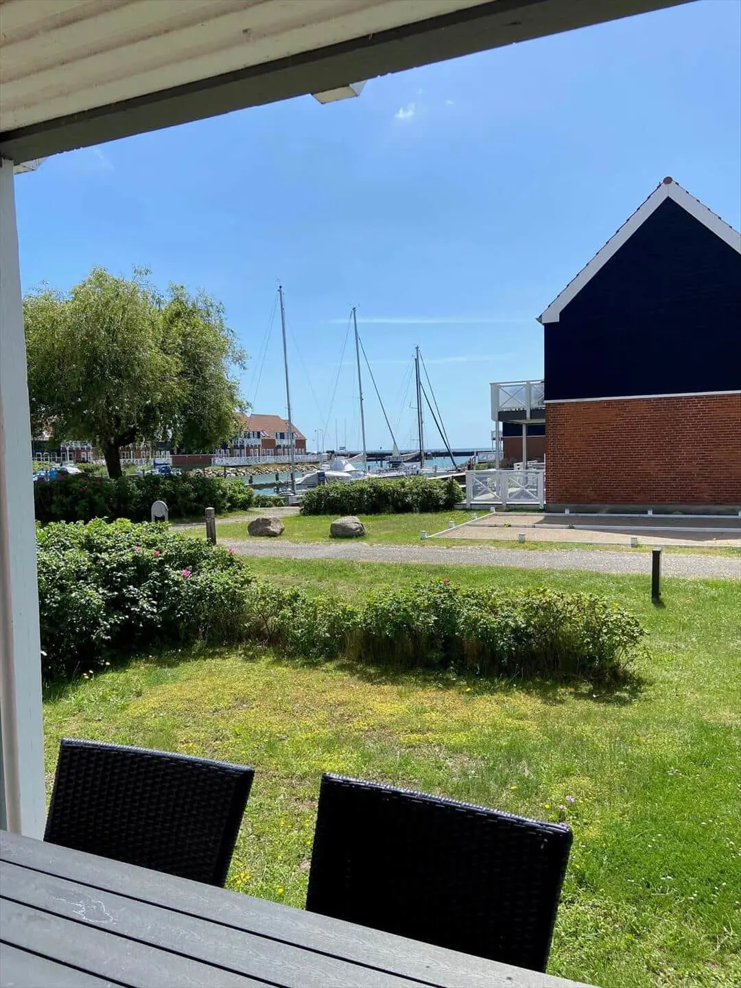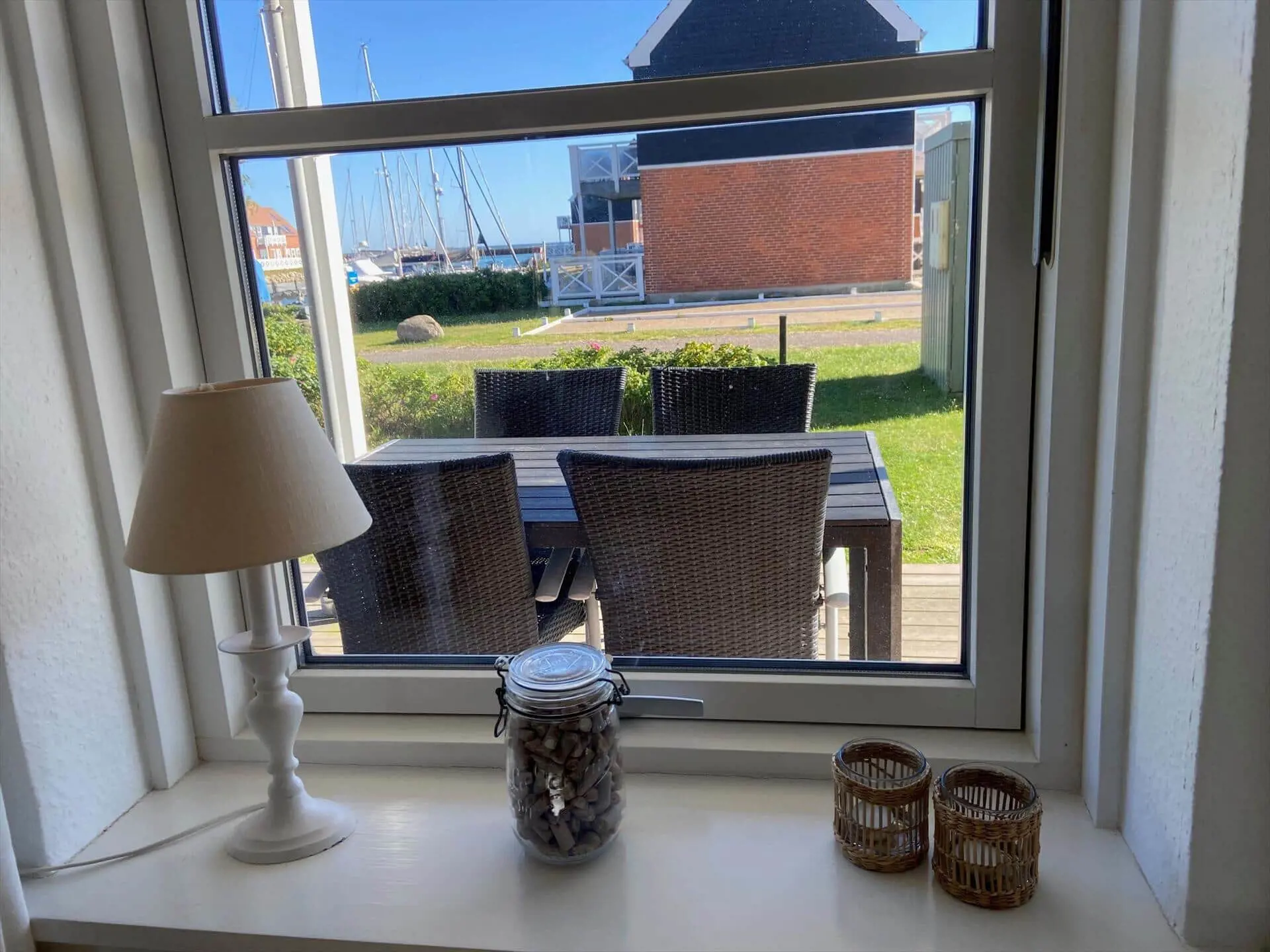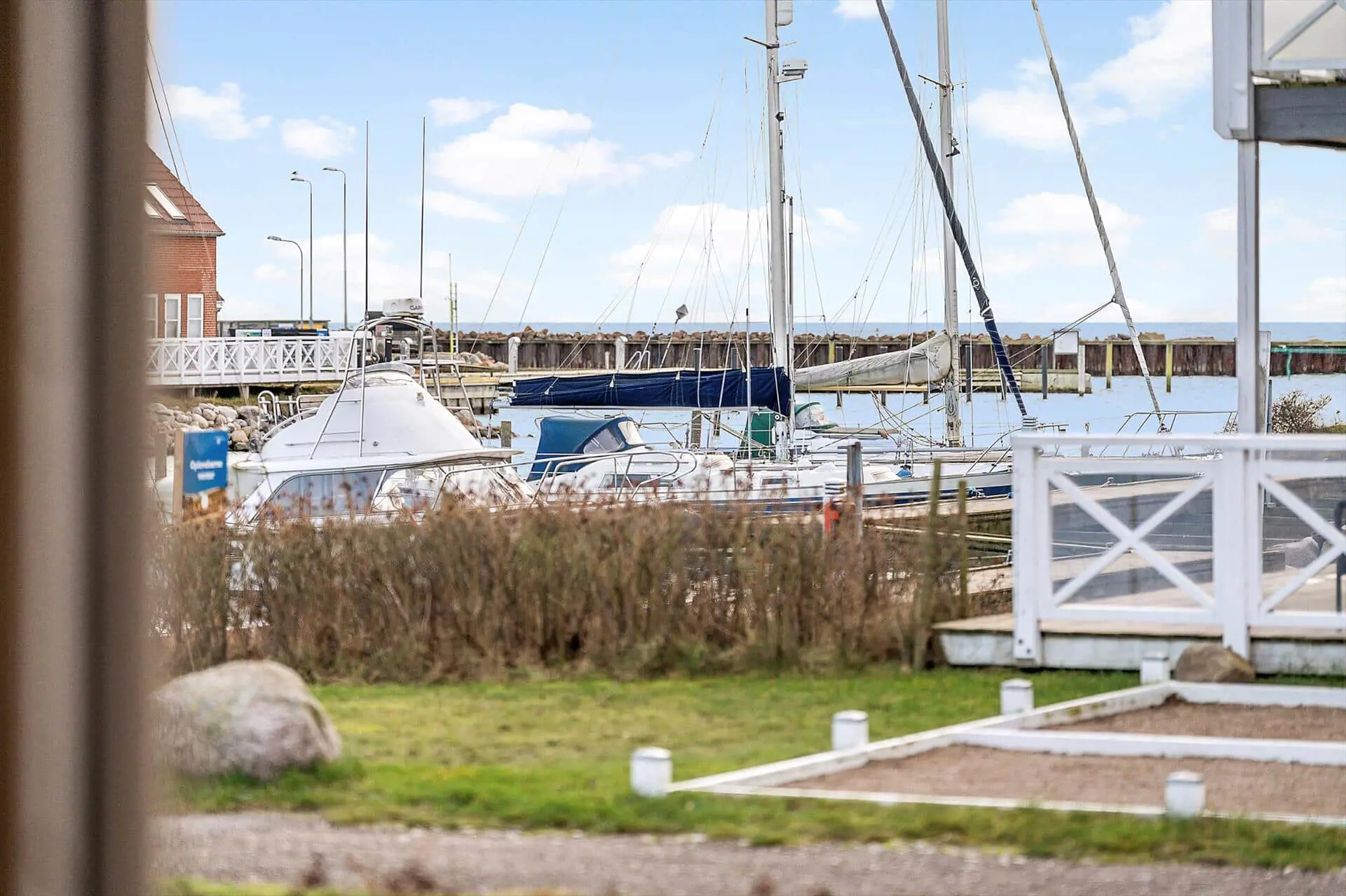 Auf der Südterrasse mit Gartenmöbeln können Sie die Aussicht und die warmen Tage und Abende genießen. Von der Wohnung aus haben Sie einen wunderschönen Blick auf den Yachthafen und sind in Strandnähe. Dank der günstigen Lage können Sie auf der einen Seite der Wohnung frischen Fisch kaufen und auf der anderen Seite Ihren Fisch selbst auf der Terrasse genießen. Hinter der Wohnung befindet sich ein Spielplatz, auf dem sich Kinder austoben können.