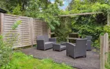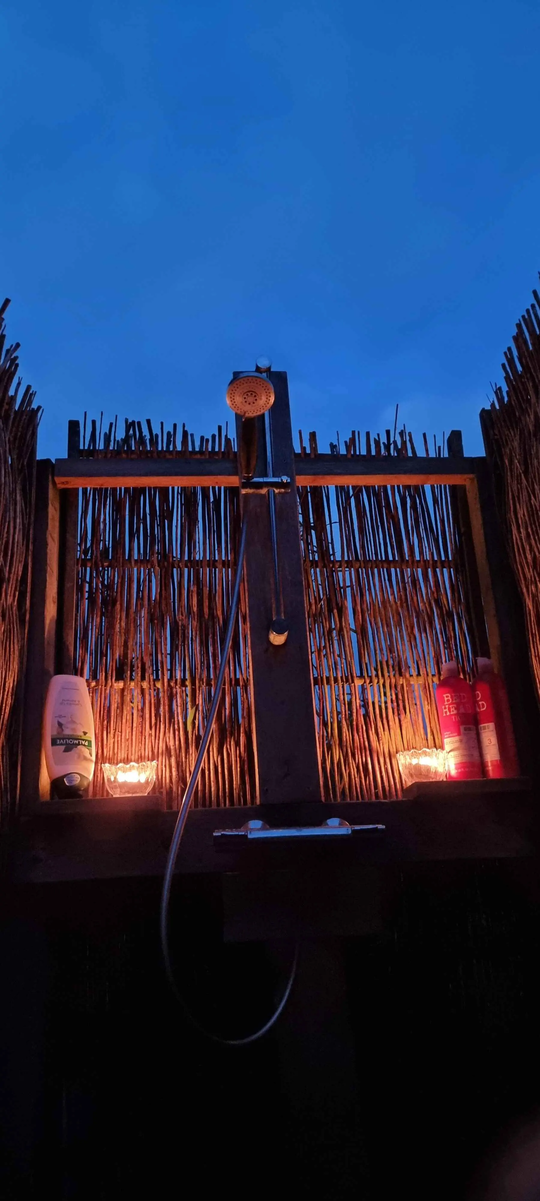 Das eingezäunte Grundstück lädt zum Entspannen ein. Eine Außendusche (mit Kalt- und Warmwasser) steht für heiße Sommertage bereit. Auf der Terrasse können Sie in der warmen Jahreszeit die langen, hellen Tage genießen – beim Sonnenbaden, Grillen, dem Rauschen der Wellen und der friedlichen Atmosphäre.
