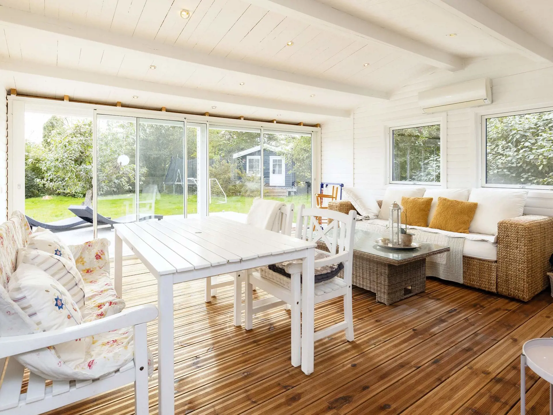 Ansprechend gepflegtes Ferienhaus mit angeschlossenem, großem Wintergarten und nur ca. 200 m Entfernung zum schönen, sehr kinderfreundlichen Strandufer von Ulvshale.