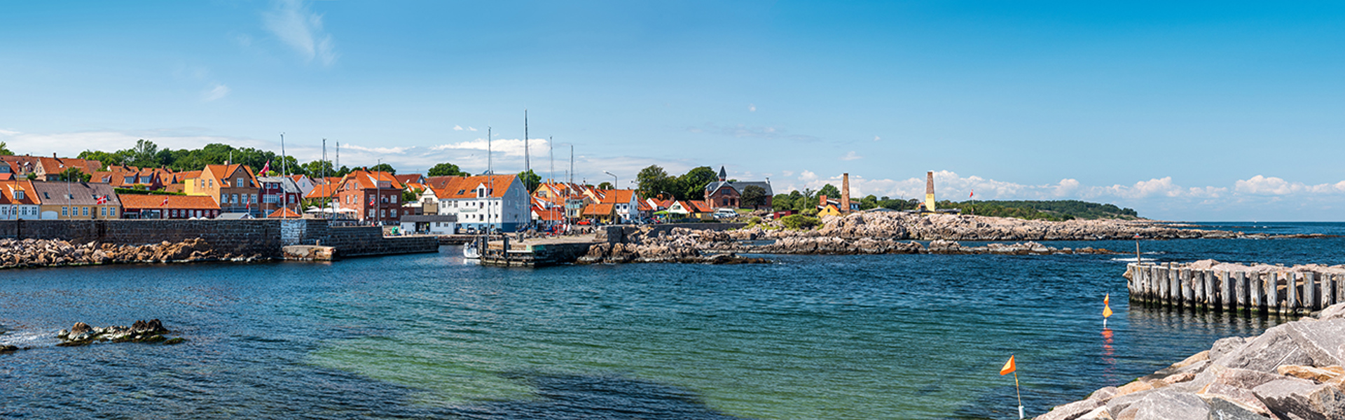 Bei Allinge liegt dieses Ferienhaus mit Panoramablick auf die Ostsee und die Insel Christians ø. Das Haus ist durchweg hochwertig eingerichtet und im hellen, skandinavischen Stil gehalten. Vom Wohnzimmer geht es hinaus auf die 110 m² große Terrasse, die das Haus zu drei Seiten umgibt. Das gesamte Haus hat Fußbodenheizung und wird energiefreundlich, mittels Wärmepumpe beheizt. Dank der Außenküche können Sie die Sommertage und -abende noch ausgiebiger auf der Terrasse verleben. Vom Haus aus können Sie zu Fuß zum Sandstrand Næs gehen oder den Ortskern und den Hafen besuchen.