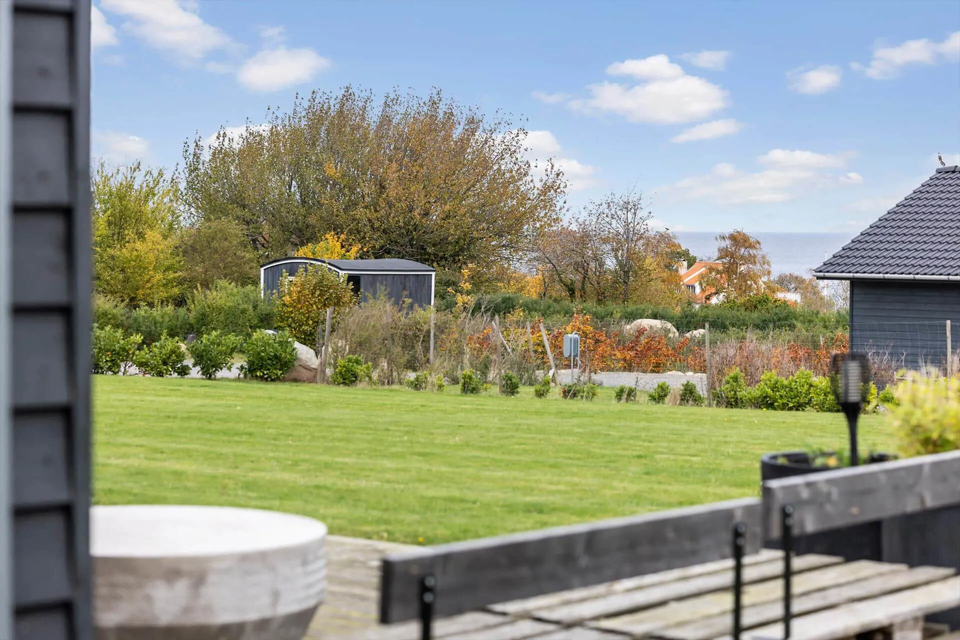 Auf dem schönen Grundstück kannst du tief durchatmen und die Ruhe auf dich wirken lassen. Die große Terrasse ist der ideale Ort zum Zusammenkommen – sei es beim Morgenkaffee in den ersten Sonnenstrahlen oder beim stimmungsvollen Grillabend, während der Duft vom Grill sich mit der frischen Meeresluft mischt. Bequeme Gartenmöbel laden zu geselligen Stunden ein, in denen du sowohl die Sonne als auch den Blick über die Ostsee genießen kannst. Während die Kinder im Garten spielen oder der Hund herumtollt, bist du ihnen ganz nah und kannst gleichzeitig deine eigenen entspannten Momente auf der Terrasse verbringen. Hier verschmelzen die Tage ganz natürlich zwischen Outdoor-Leben, Erholung und gemeinsamen Erlebnissen unter freiem Himmel.