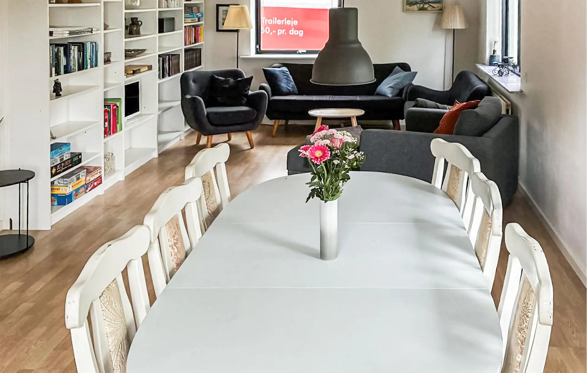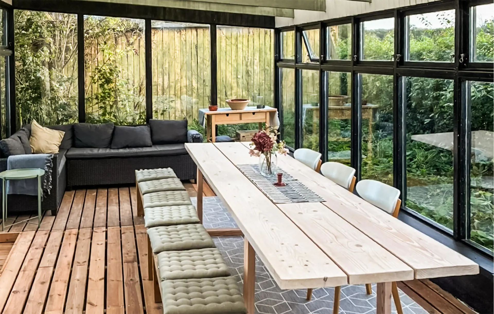 Dieses großzügige Haus heißt Sie mit einem behaglichen Ambiente willkommen, in dem warmes Holz, rustikale Möbel und eine praktische Küche eine unbeschwerte Atmosphäre schaffen. Lehnen Sie sich mit einem Tee auf dem Sofa zurück, spielen Sie mit den Kindern Brettspiele am Esstisch oder tafeln Sie in geselliger Runde im Wintergarten.