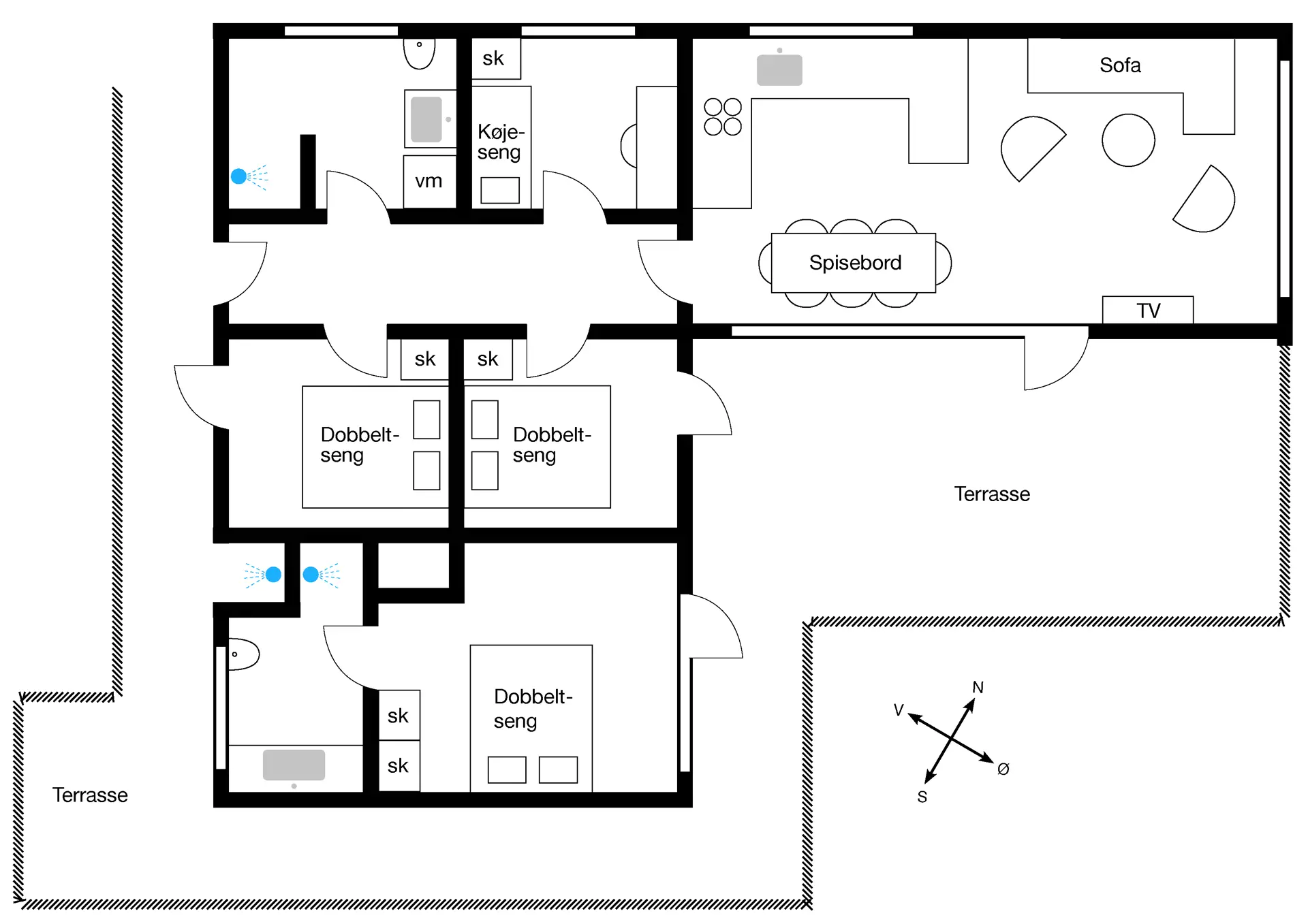 In der Ferienunterkunft gibt es einen Fernseher.1 Chromecast. Fernsehen via Streaming. Mindestens 4 dänische Fernsehsender. Es steht kabellose Internetverbindung zur Verfügung.