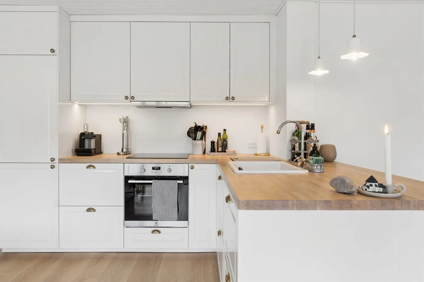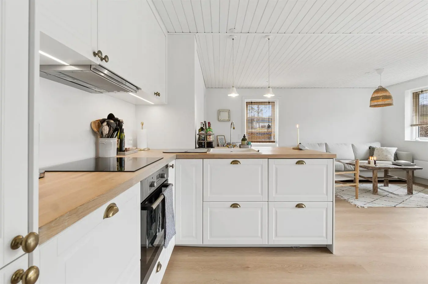 Die Küche ist mit Kühlschrank ausgestattet. Außerdem gibt es 4 Induktions-Kochzonen, Umluftofen sowie Geschirrspüler.