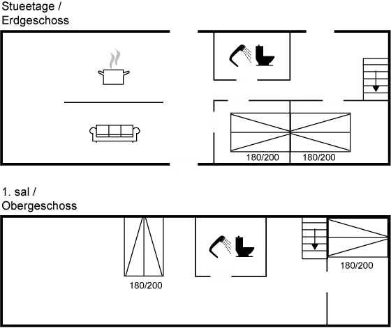 Die Schlafplätze verteilen sich auf 4 Schlafräume. 8 Schlafplätze in Doppelbetten. Ferner steht ein Kinderbett zur Verfügung.