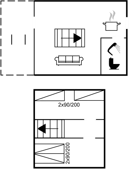 Die Schlafplätze verteilen sich auf 2 Schlafräume. 4 Schlafplätze in Einzelbetten.