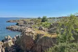 Die Wohnung liegt zentral in Gudhjem, wo die hügelige Brøddegade hinunter zum Hafen führt. Von dort fährt täglich die Fähre zur Insel Christiansø. In Gudhjem findest du zahlreiche Restaurants, einen Supermarkt und viele kleine Geschäfte. Die Felsküste bietet idyllische Buchten und zerklüftete Klippenformationen – hier bekommst du das Gefühl, im Süden zu sein, wenn du deinen Urlaub in Gudhjem verbringst.