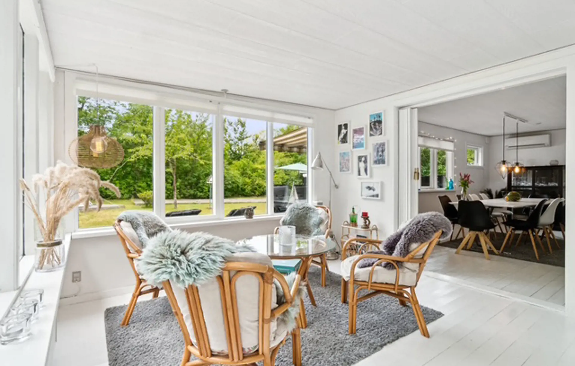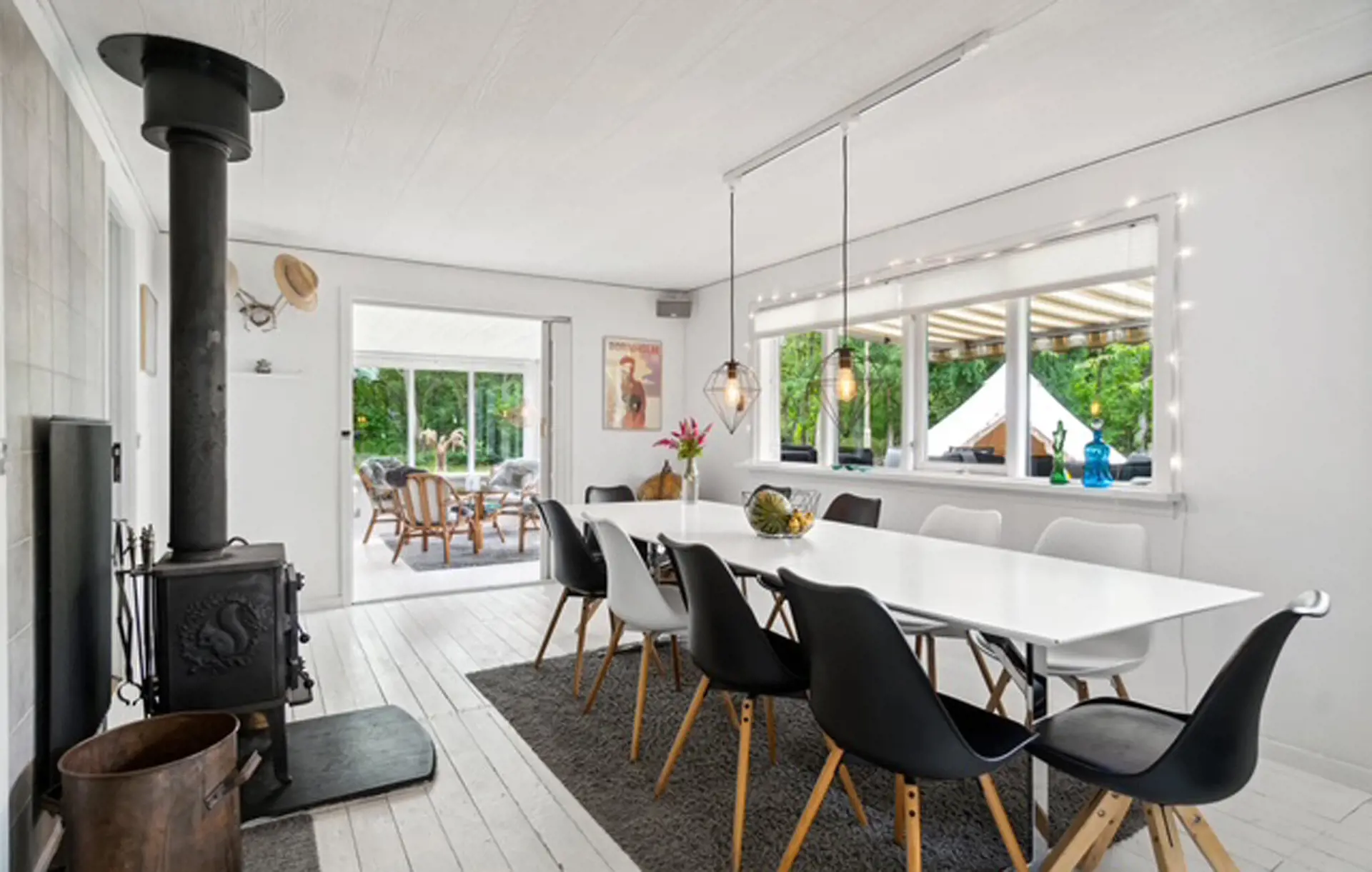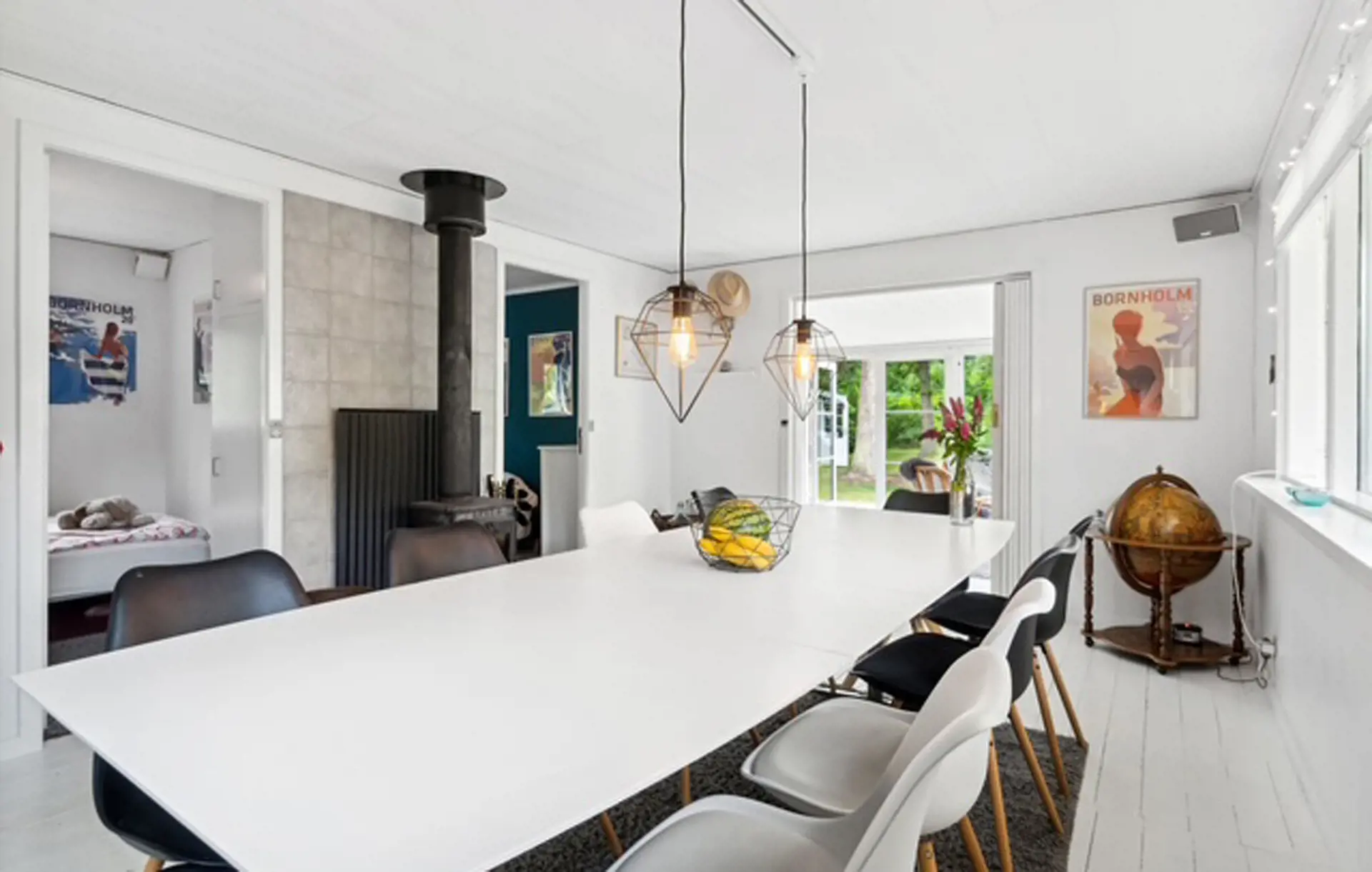 In diesem Ferienhaus finden Sie ideale Bedingungen, um zu entspannen, Zeit mit der Familie zu verbringen und die Schönheit Bornholms in vollen Zügen zu genießen. Das Haus ist hell und freundlich gestaltet, mit einer gemütlichen Einrichtung und einem stilvollen skandinavischen Design. Im offenen Wohn- und Essbereich lädt ein langer Esstisch zu gemeinsamen Mahlzeiten ein, während der Kaminofen für eine behagliche Atmosphäre sorgt. Entspannen Sie im Wintergarten mit Blick in den Garten oder genießen Sie gemütliche Stunden auf dem Sofa. Die gut ausgestattete Küche bietet alles, was Sie für die Zubereitung Ihrer Lieblingsgerichte benötigen.