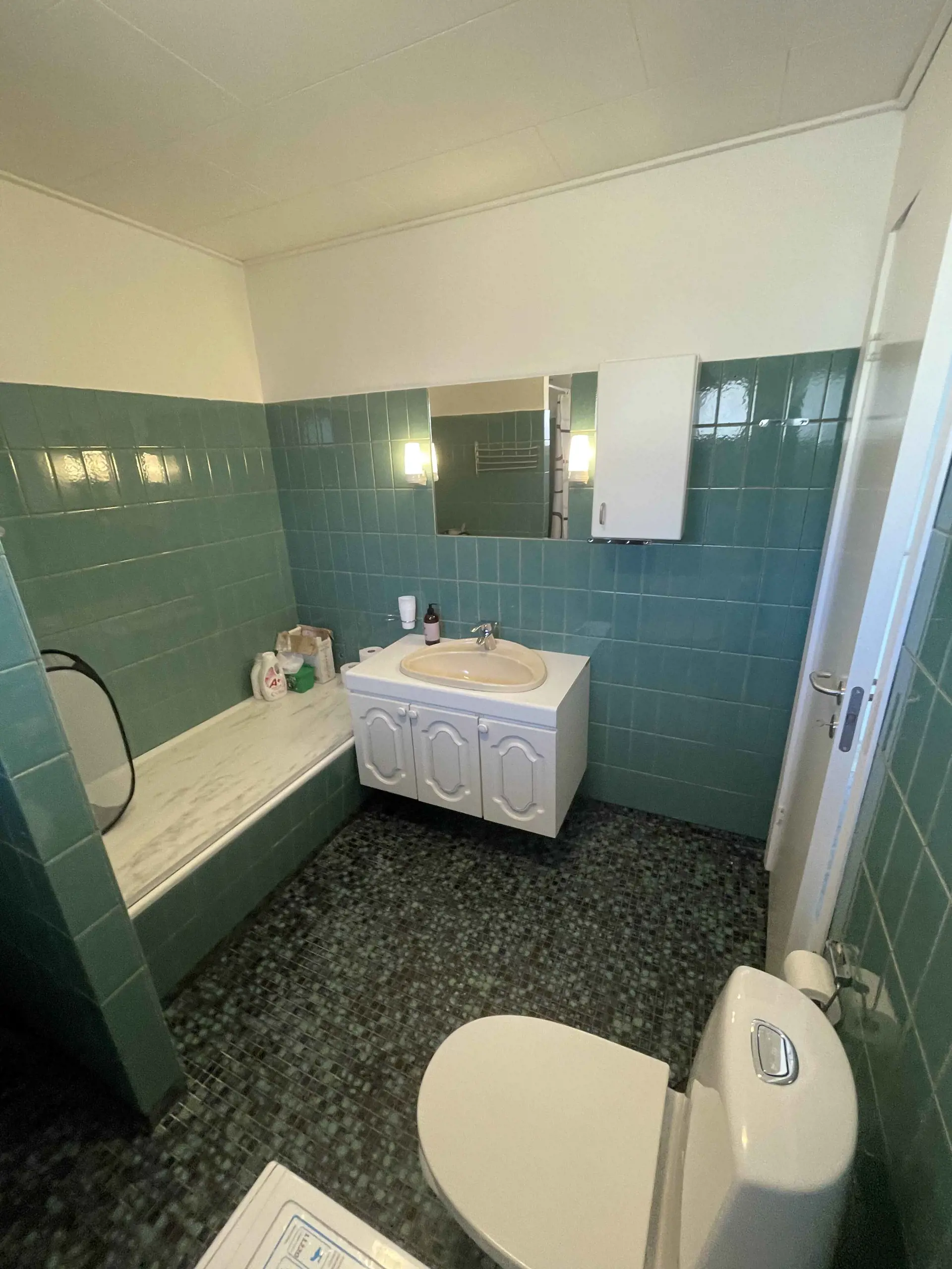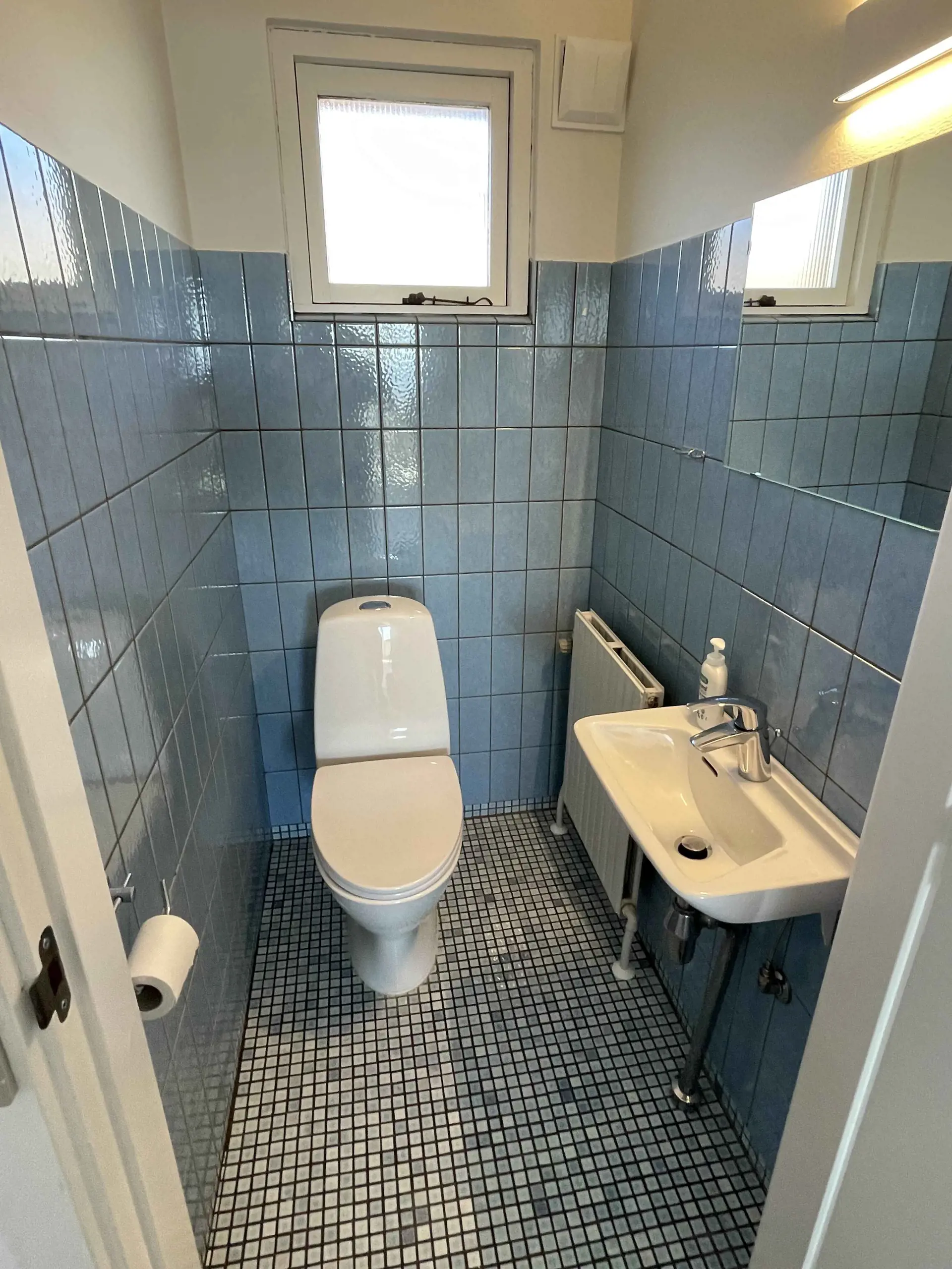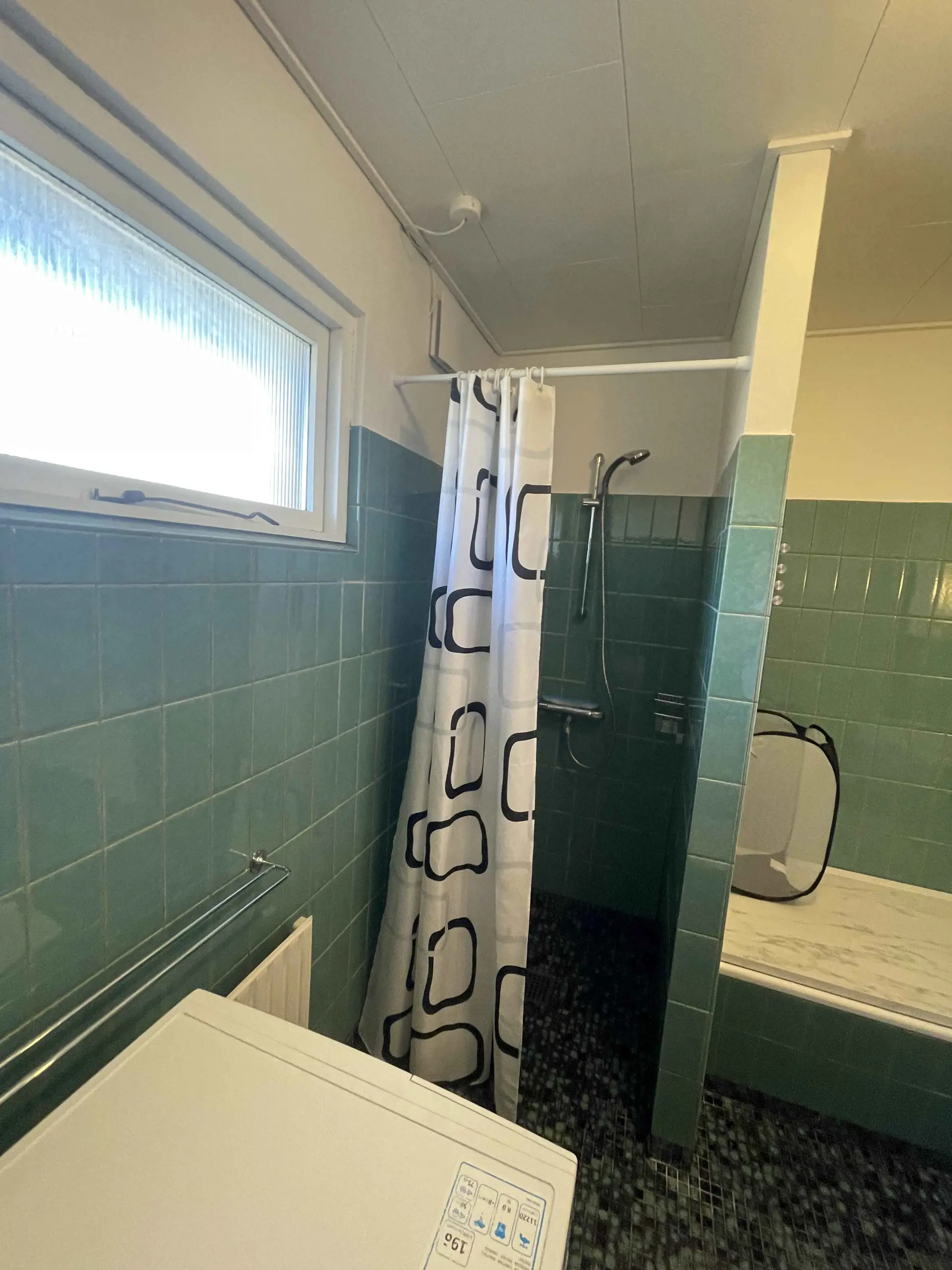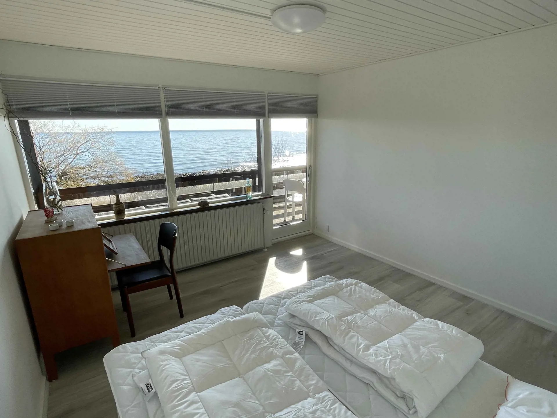 Das Haus wird im Erdgeschoss vermietet und umfasst ca. 128 m². Innen präsentiert sich die Unterkunft hell und schlicht mit weißen Wänden und Decken sowie hellen Böden für eine ruhige Atmosphäre.