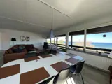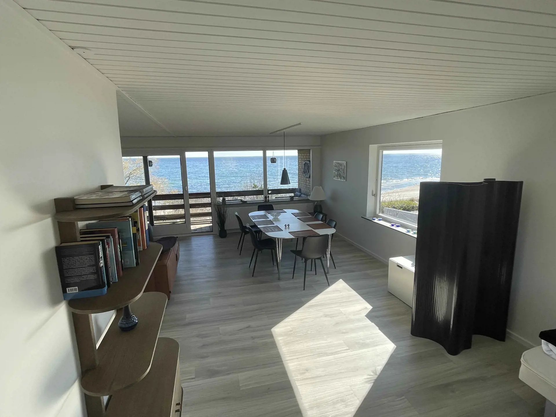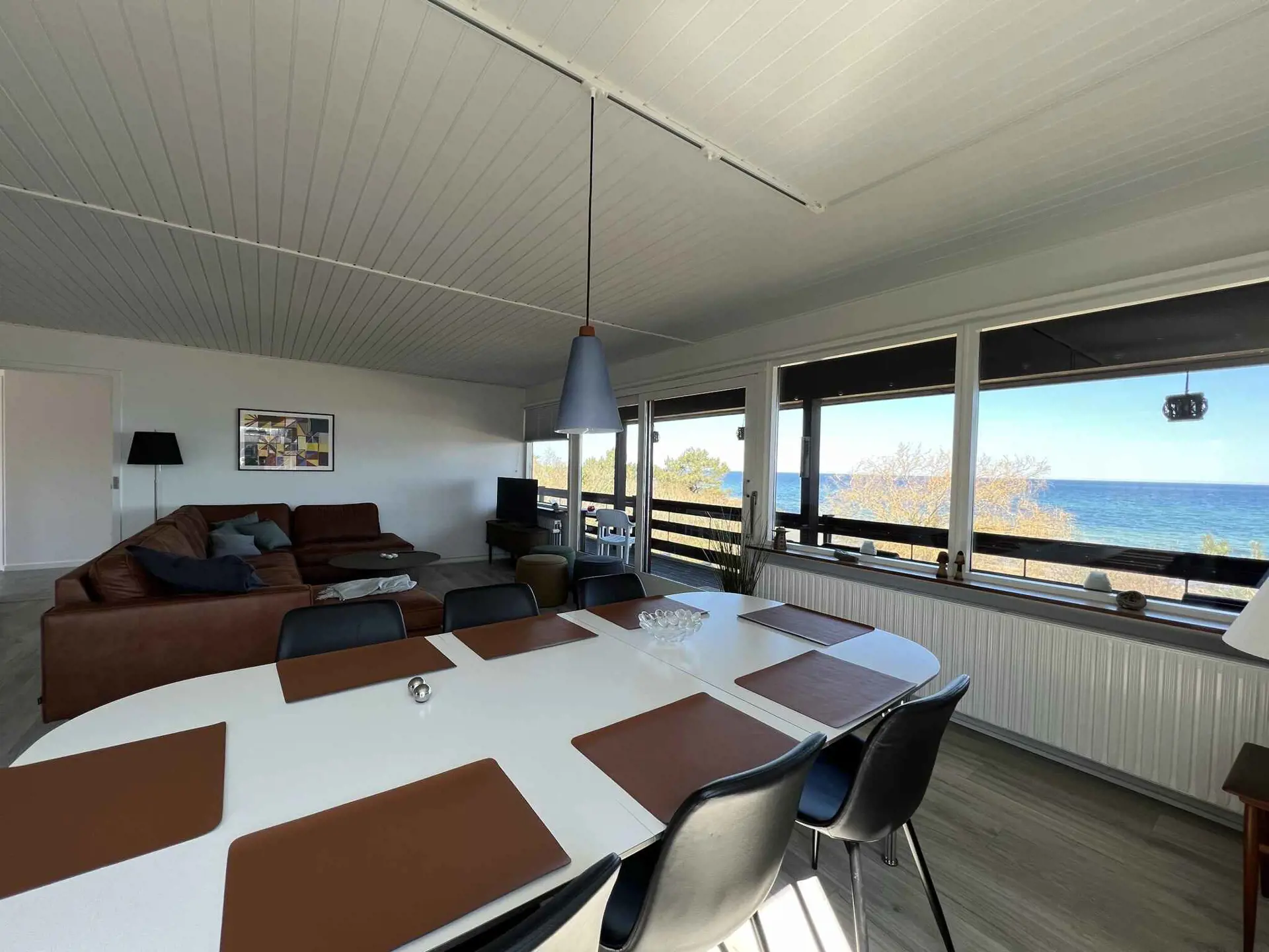 Der große Wohn- und Essbereich ist der Mittelpunkt des Hauses mit Platz zum Entspannen und Zusammensein. Große Fenster sorgen für viel Licht und einen herrlichen Meerblick. Von hier aus gelangt man direkt auf die überdachte Terrasse mit sechs Sitzplätzen – ideal auch bei wechselhaftem Wetter.