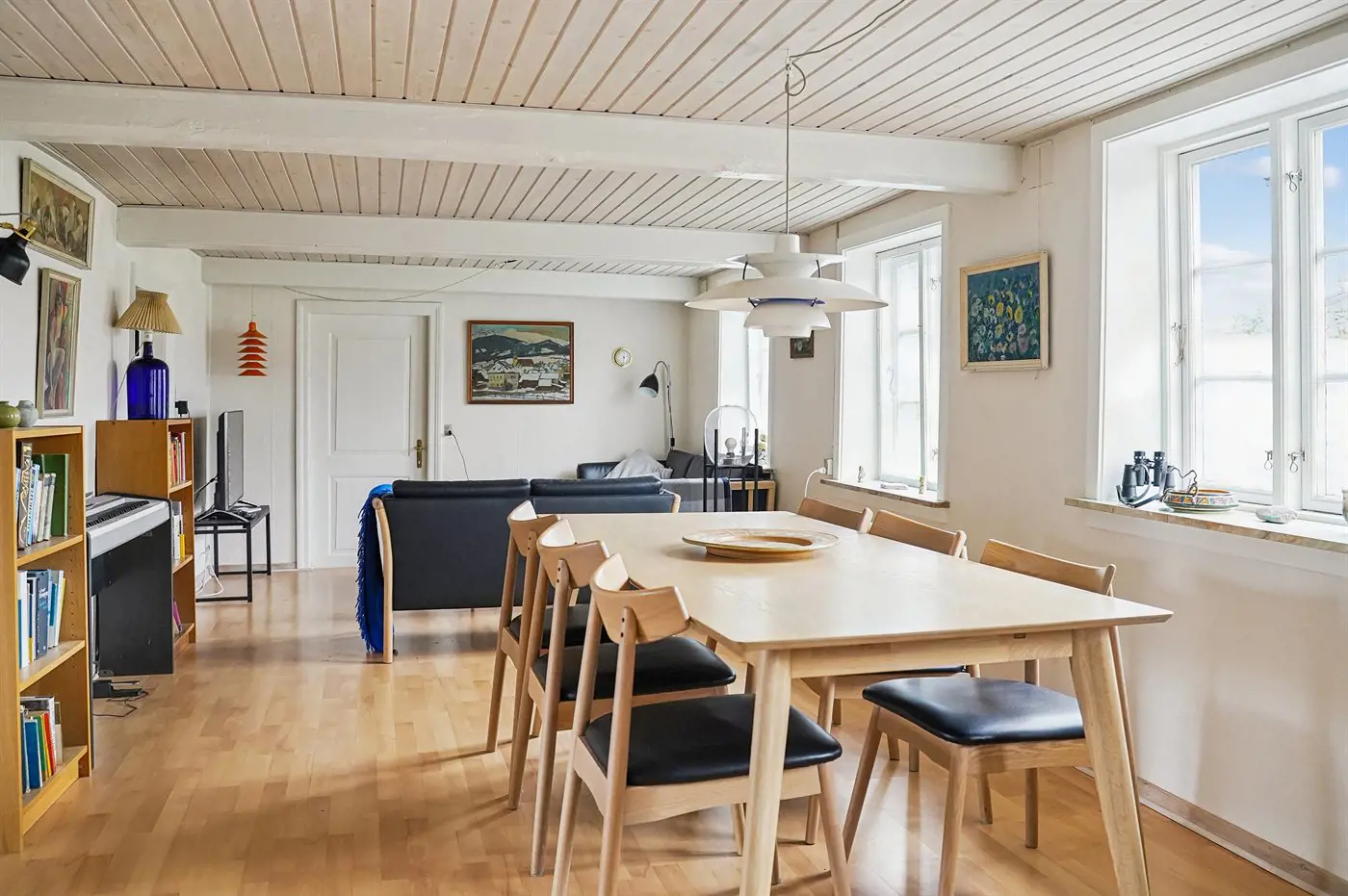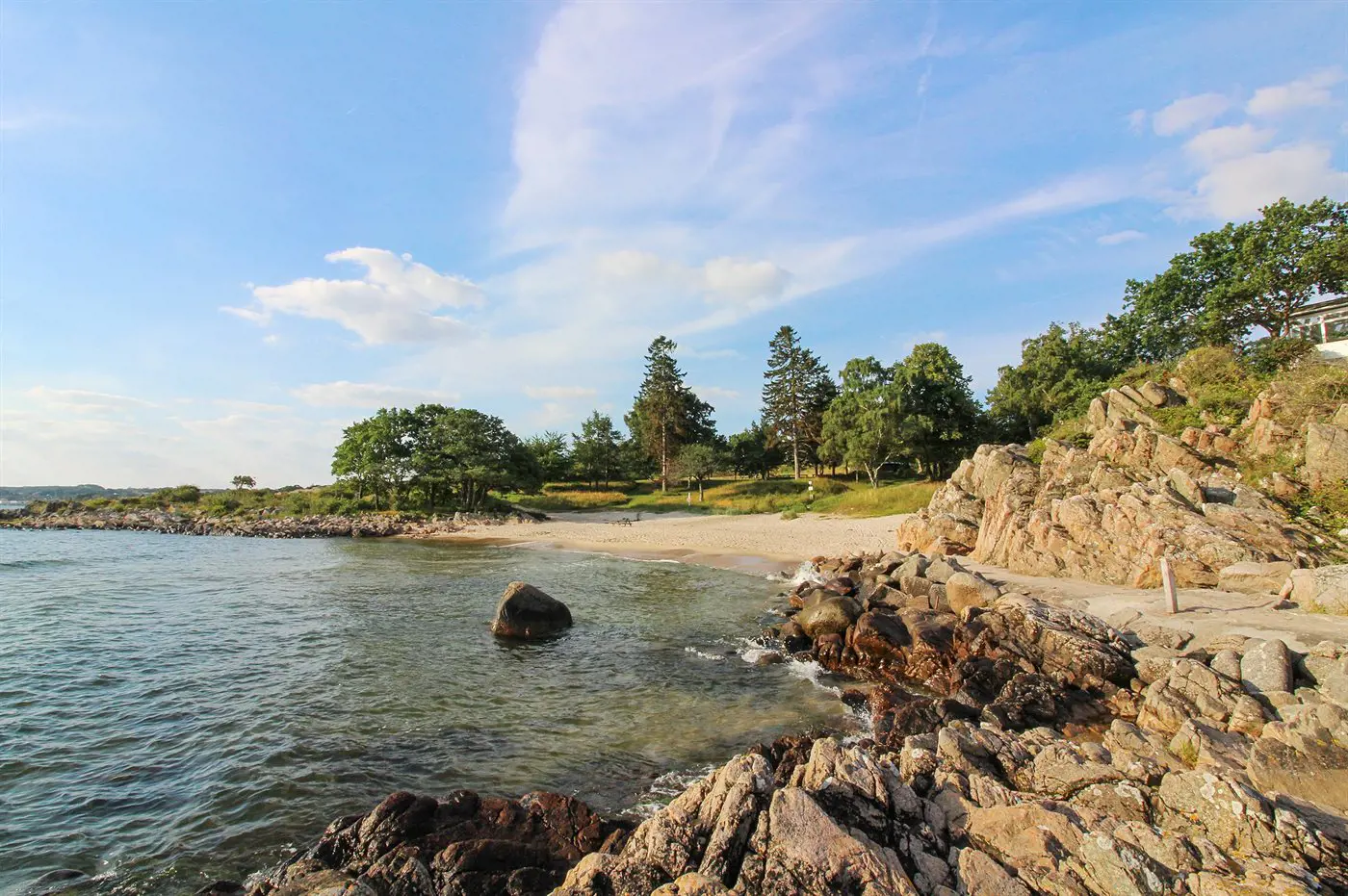 Entlang des idyllischen Küstenwegs hast du die Möglichkeit, einen gemütlichen Spaziergang in die Stadt des Volkstreffens (Folkemødet) Allinge zu unternehmen. Nordbornholm bietet zudem viele spannende Sehenswürdigkeiten an, darunter die beeindruckenden Felsformationen am See ”Opalsøen”, die imposante Burgruine Hammershus sowie die faszinierenden Felszeichnungen der Region.