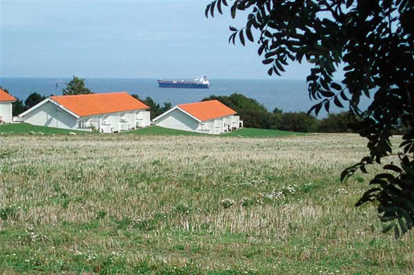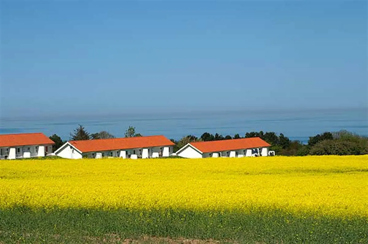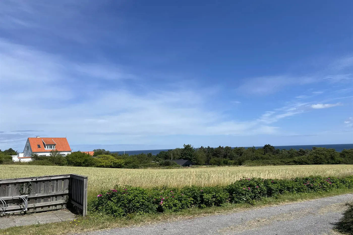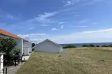 Helle Ferienwohnung mit 27 Quadratmetern, gelegen mit einem schönen Blick über die Felder im sanft abfallenden Gelände und über die Ostsee mit Christiansø in der Ferne.