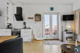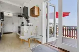 Helle und einladende Ferienwohnung im 1. Obergeschoss mit einem herrlichen Balkon mit Gartenmöbeln, sodass du den Blick auf die Ostsee genießen kannst. Mit direktem Ausgang vom Wohnzimmer hast du außerdem eine zusätzliche überdachte Terrasse. Die Wohnung wurde 2020 modernisiert, sodass alles modern wirkt, und die Möblierung sorgt dafür, dass du dich sofort wohlfühlst – die großen Fenster zur Meerseite ermöglichen es dir, auch von innen das Spiel der Natur auf dem Meer zu verfolgen.