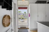 Die Küche ist mit Kühlschrank ausgestattet. Außerdem gibt es 4 Keramik-Kochfelder, Umluftofen.