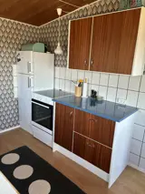 Die Einrichtung ist schlicht und praktisch. Zwei Schlafzimmer sind mit Doppelbetten ausgestattet, das dritte verfügt über ein Etagenbett und einen separaten Eingang. Die voll ausgestattete Küche ist offen mit dem Essbereich verbunden und bietet Ausblick auf die Umgebung.