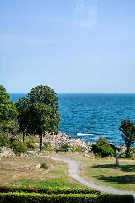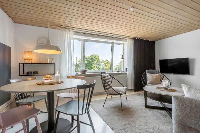 Den herrlichen Meerblick (mit Möglichkeit zum Meeresschwimmen) direkt von der Wohnung aus genießt man durch die öffentliche Parkanlage, die jedes Jahr das berühmte Folkemøde beherbergt. Näher an diesem Volksfest kann man einfach nicht sein! Zudem sind es nur wenige Gehminuten zum Stadtzentrum von Allinge, aber auch nach Sandvig.