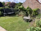 Im Garten hält die Katze Smukke Wache über das Grundstück. Eine freundliche Wächterin, die nur Trockenfutter und Wasser für ihre treuen Dienste benötigt. Ein kleines Detail, das diesen Ort besonders macht.