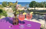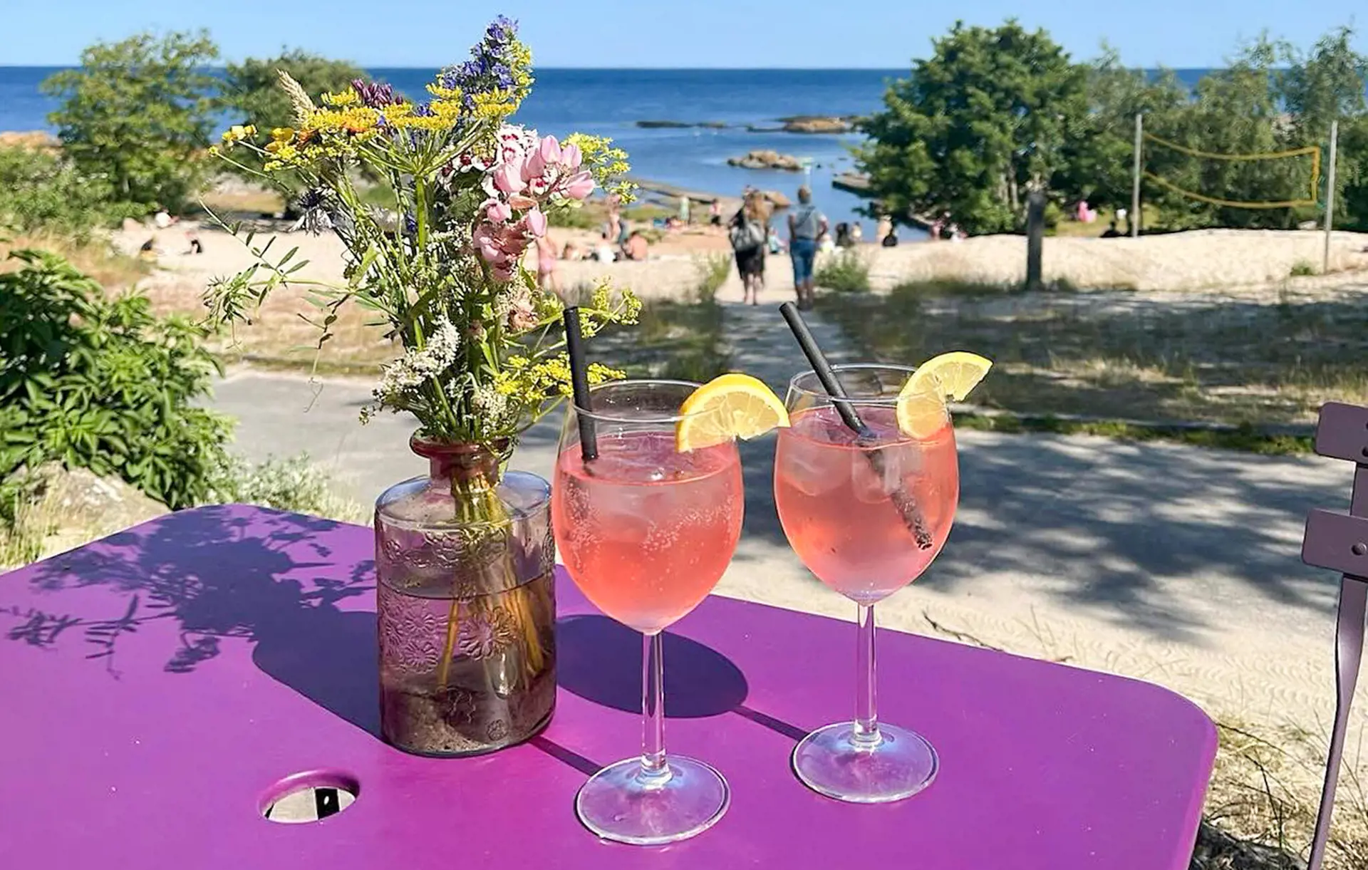 Gehen Sie hinaus in die große, geschützte Gartenanlage mit alten Apfel- und Kirschbäumen. Frühstücken Sie auf der sonnigen Südterrasse und nutzen Sie den Grill oder die Feuerstelle für gesellige Abende im Freien. Erfrischen Sie sich im Sommer unter der Außendusche mit Blick auf die umliegende Natur. Von hier führt ein kleiner Weg direkt zur Bucht und zum beliebten Strandcafé Syd-Øst for Paradis.