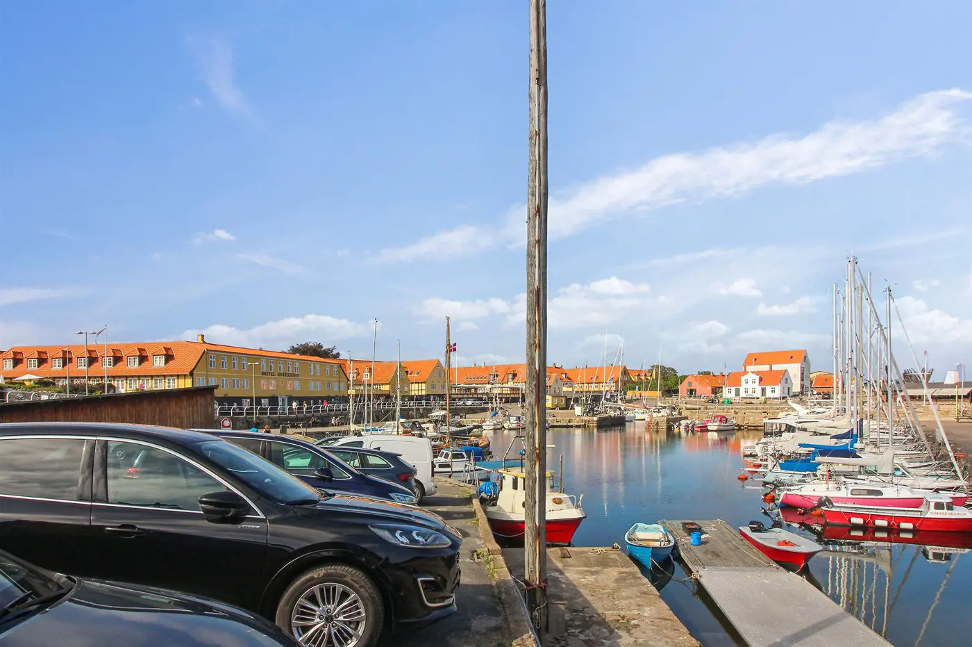 Eine ruhige Gegend – ganz in der Nähe der gut erhaltenen alten Handelsstadt Svaneke, die mit Fachwerkhäusern, roten Ziegeldächern und Sprossenfenstern für ihre beispielhafte Stadterhaltung mit einer europäischen Goldmedaille ausgezeichnet wurde, wobei besonderer Wert auf die Pflege der alten Häuser gelegt wird, die der Stadt ihr ganz besonderes Leben verleihen.