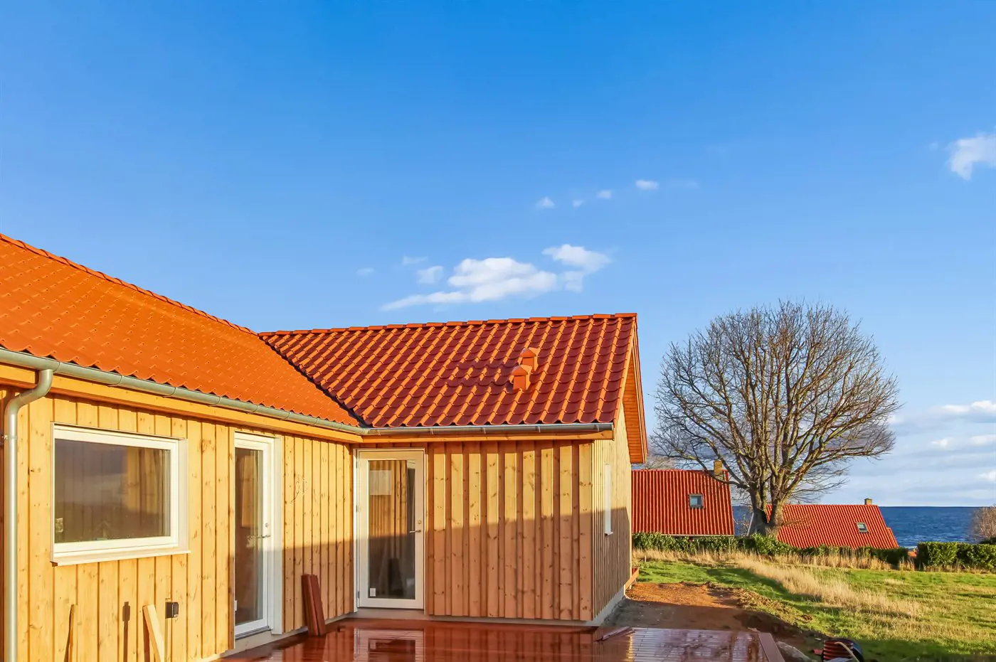 Neu gebautes Qualitätsferienhaus im Baugebiet Frennebakke, bei dem großen Wert darauf gelegt wurde, dass jedes Haus über große Grundstücke und vielfältige Möglichkeiten mit Blick auf das Meer, die Stadt und die umliegende Natur verfügt.