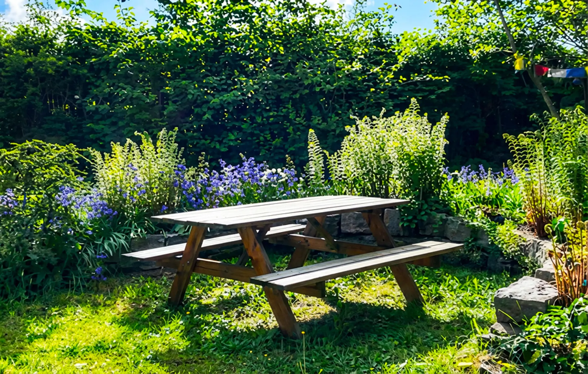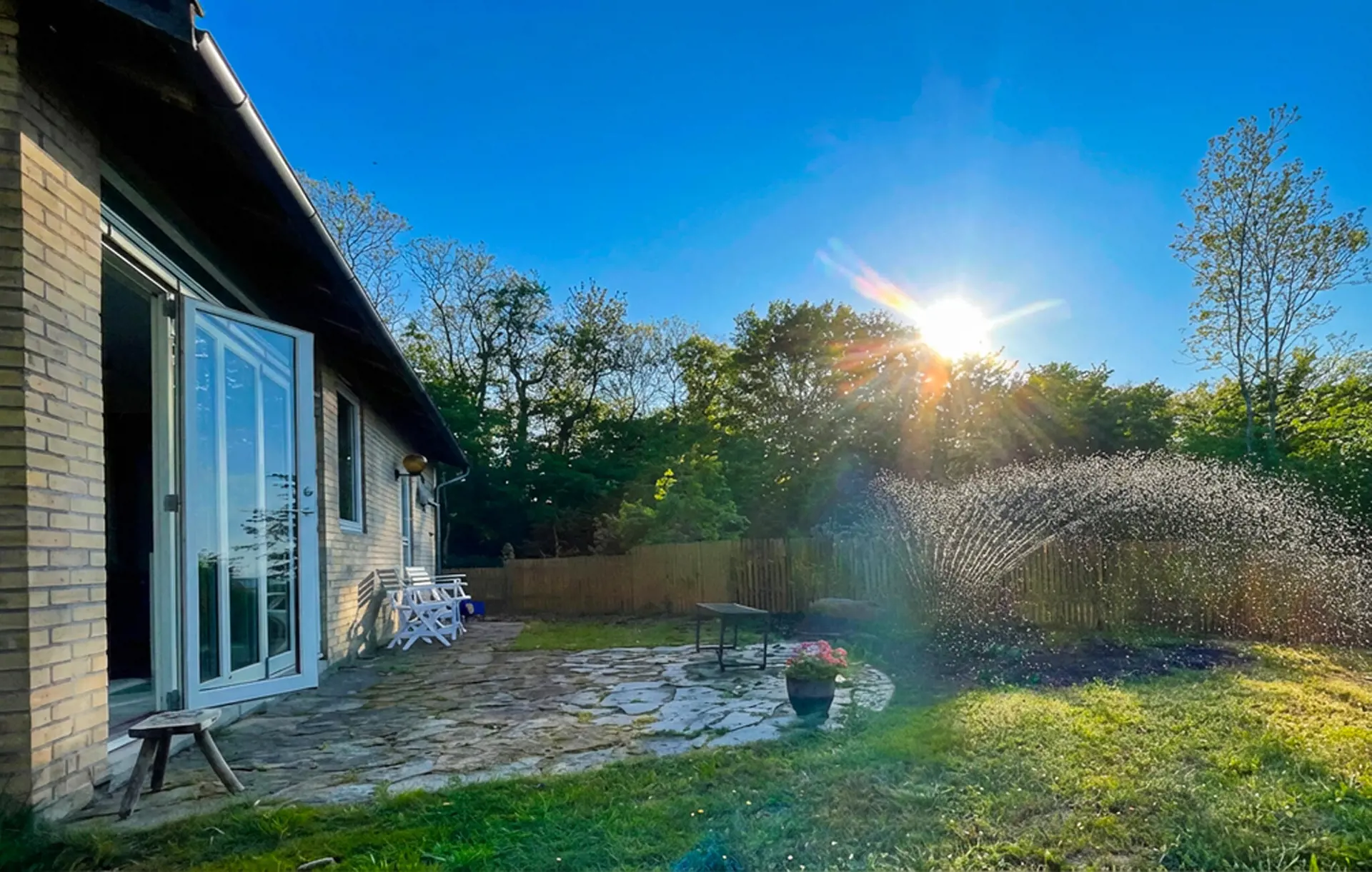 Treten Sie morgens in den schönen, grünen Garten und lauschen Sie dem Vogelgezwitscher. Frühstücken Sie im Sonnenschein und genießen Sie dabei die schöne Aussicht. Abends können Sie frischen Fisch grillen und mit Familie oder Freunden auf Ihre Urlaubserlebnisse anstoßen.