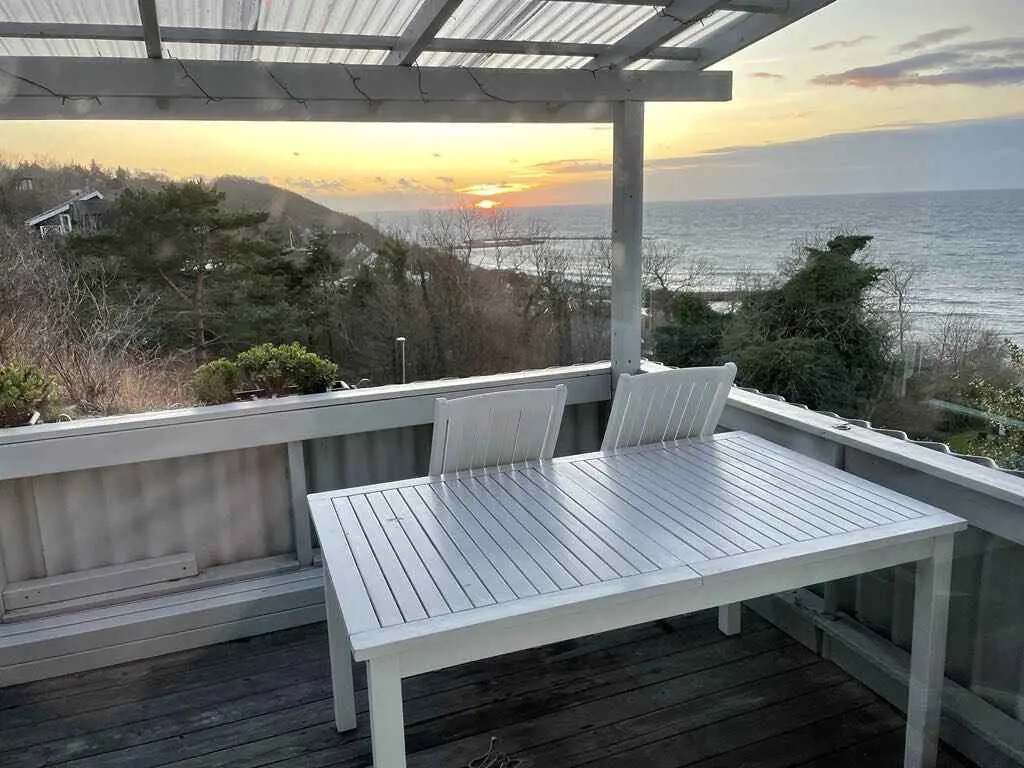 Sowohl am Haus als auch am Nebengebäude befinden sich Terrassen, von denen aus Sie die fantastische Aussicht auf die Ostsee und möglicherweise einige der schönsten Sonnenuntergänge Bornholms genießen können.
