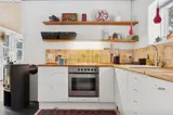 Die Küche ist mit Kühlschrank ausgestattet. Außerdem gibt es 4 Keramik-Kochfelder, Umluftofen sowie Geschirrspüler.