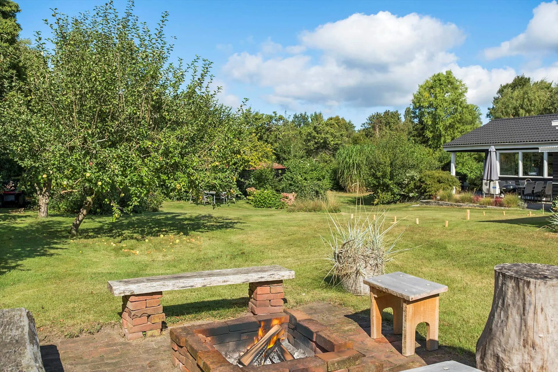 Im schönen Garten gibt es Platz für Kinder und Erwachsene zum Toben, es besteht die Möglichkeit, Tischtennis, Billard usw. zu spielen. Wenn der Gewinner feststeht, kann man sich zum Lagerfeuerplatz zurückziehen, mit Snobrød und guten Geschichten von den Erlebnissen des Tages.
