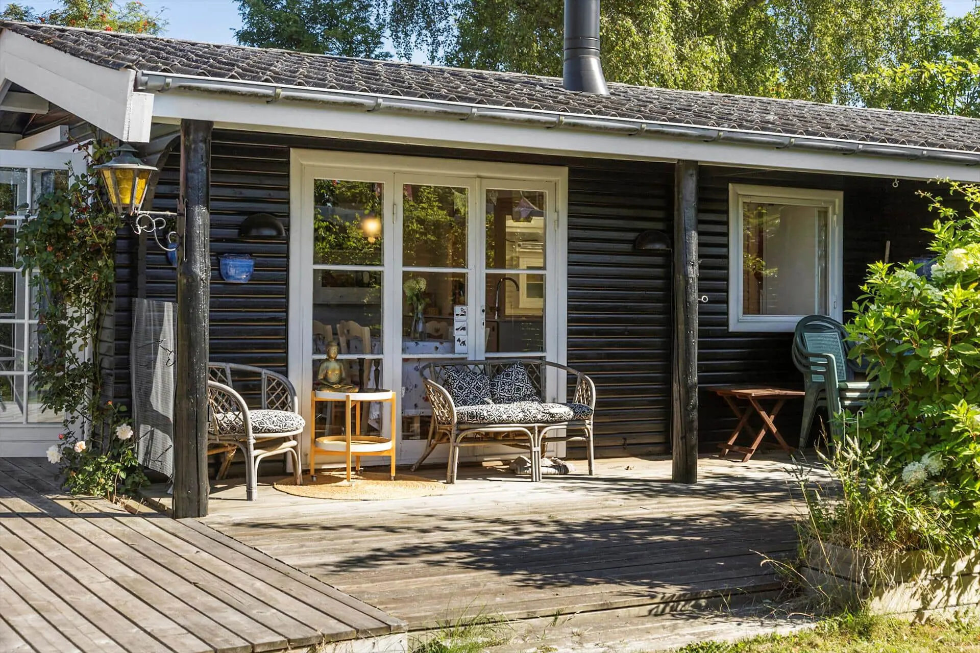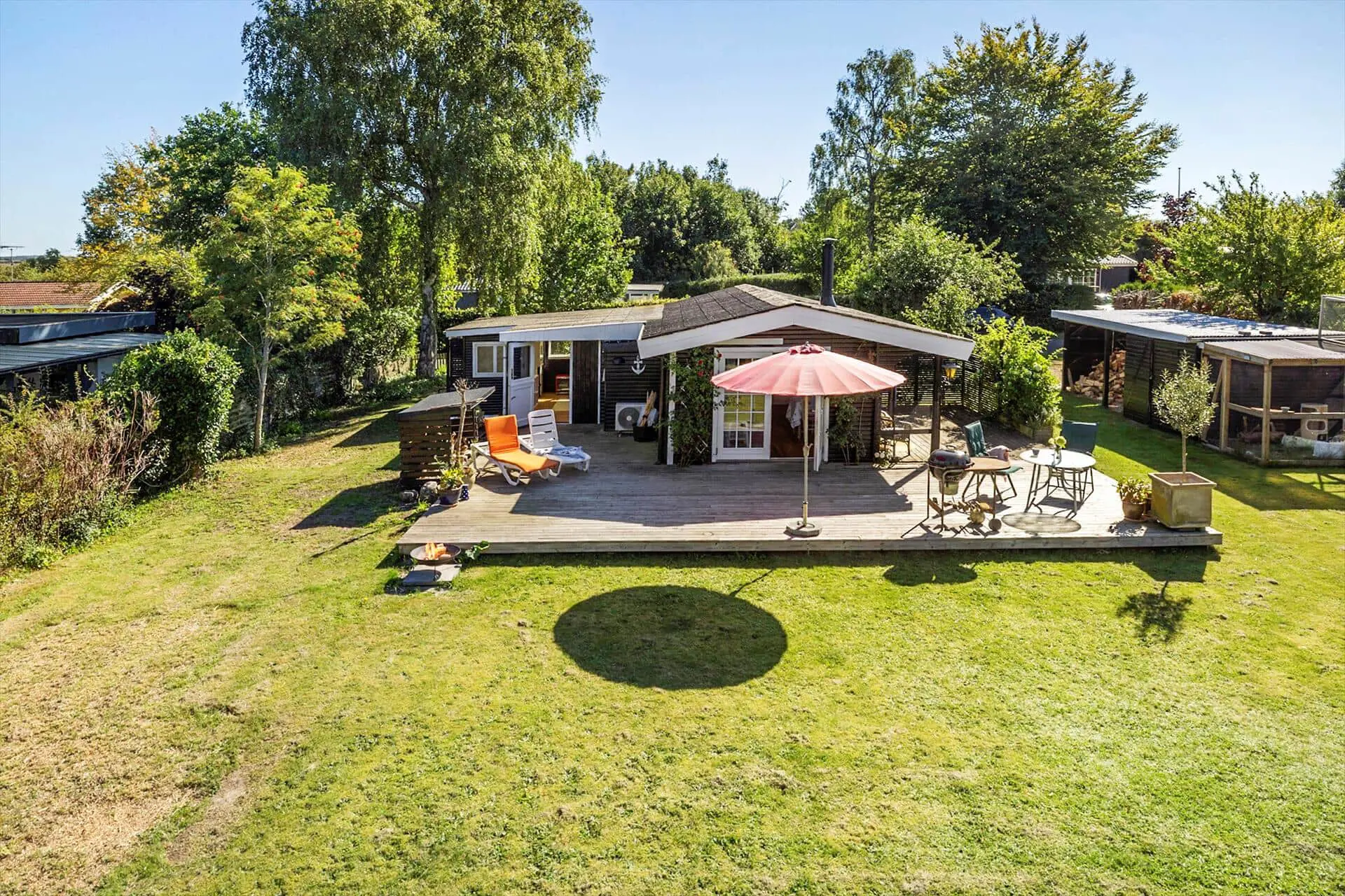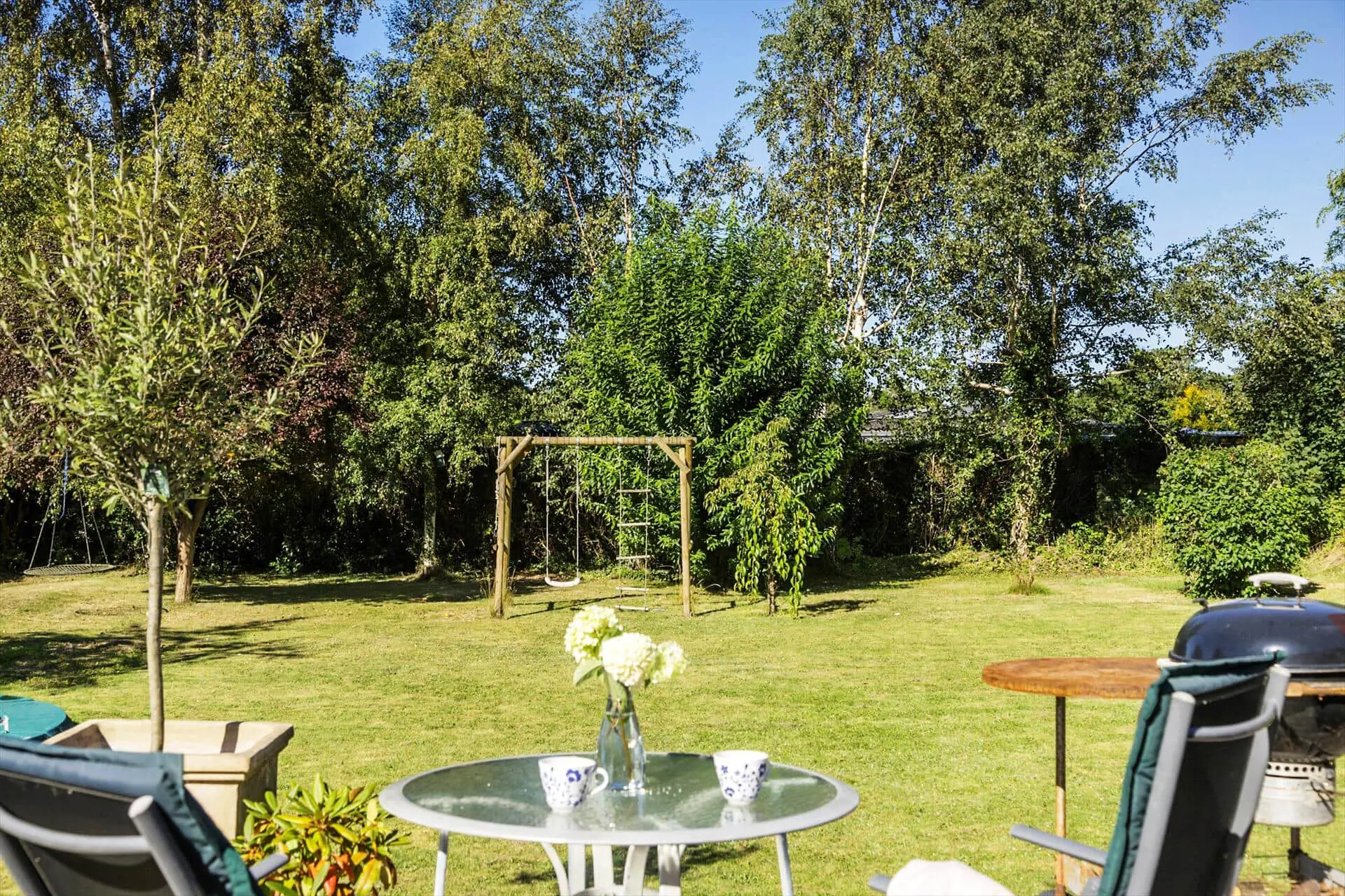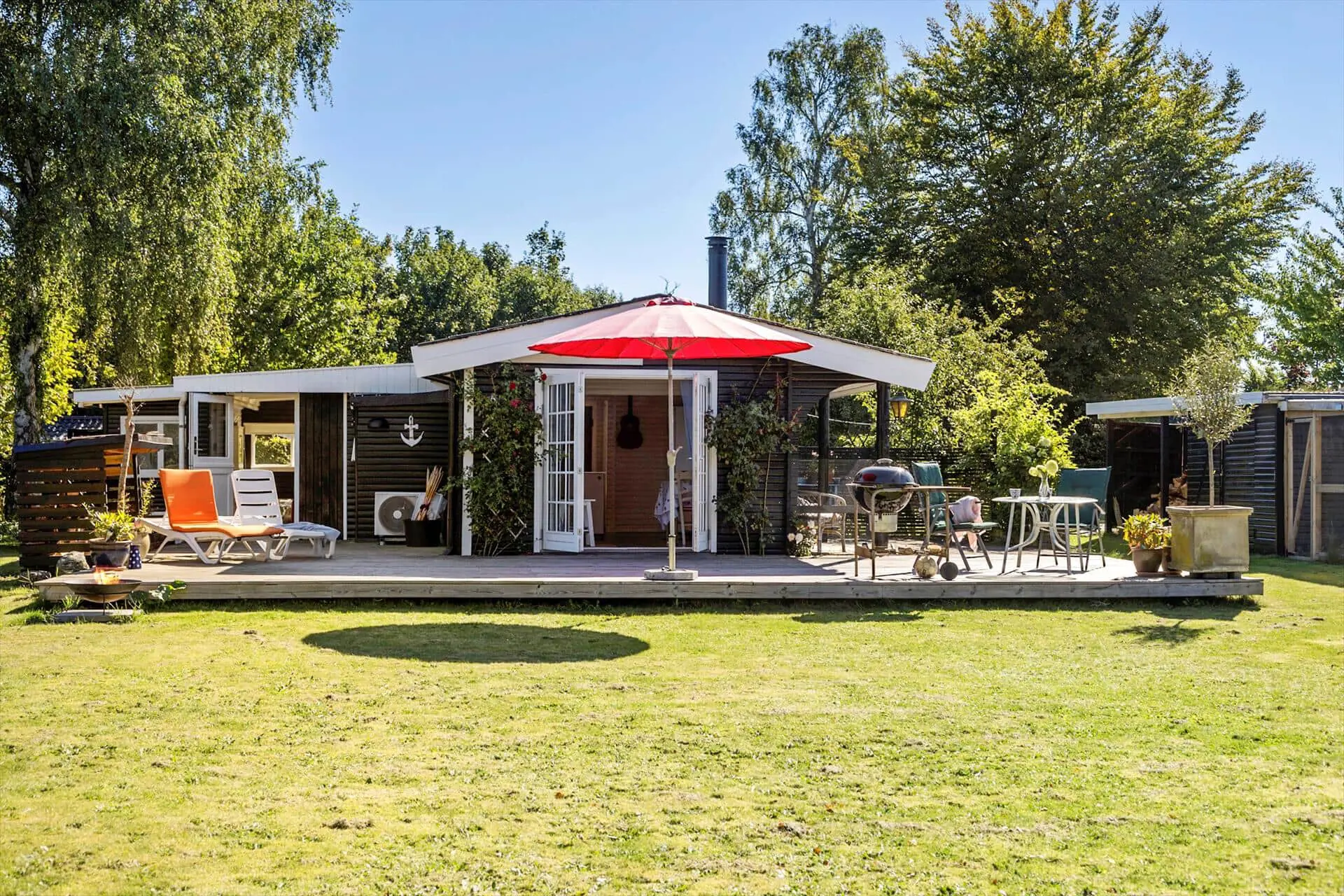-Auf der großen Terrasse des Hauses, die immer auf einer Seite überdacht ist, finden Sie den Grill, auf dem Sie Steaks zubereiten können, während Sie sich auf der Sonnenliege oder mit einem Glas kalten Roséwein im Sessel entspannen. Der Garten ist mit einem Trampolin und Schaukeln ausgestattet, und der Rasen ist ideal für eine Partie Petanque oder Krocket.