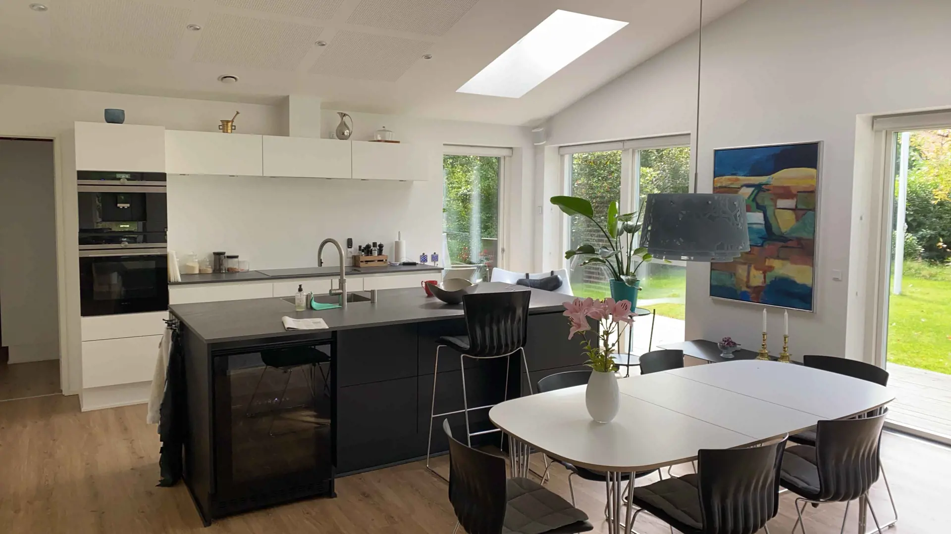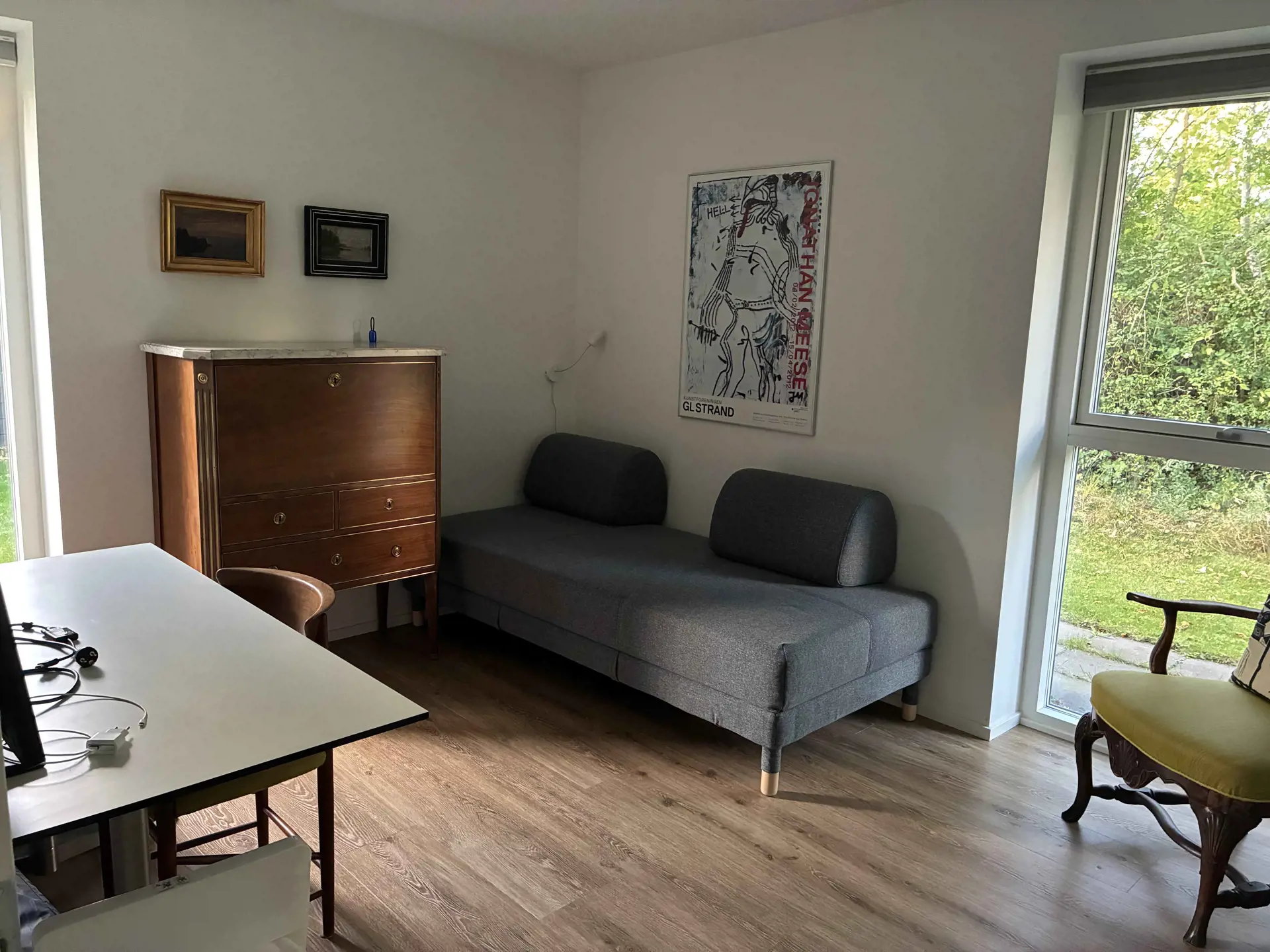 Nur 500 Meter entfernt liegt die Küste, ideal zum Schwimmen, Spazierengehen oder um den Sonnenuntergang über dem Meer zu genießen. Die Umgebung von Gilleleje bietet gemütliche Cafés, kleine Geschäfte und einen lebhaften Hafen mit frischem Fisch.