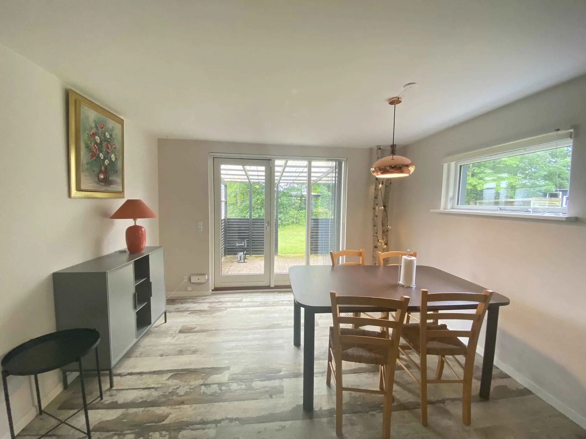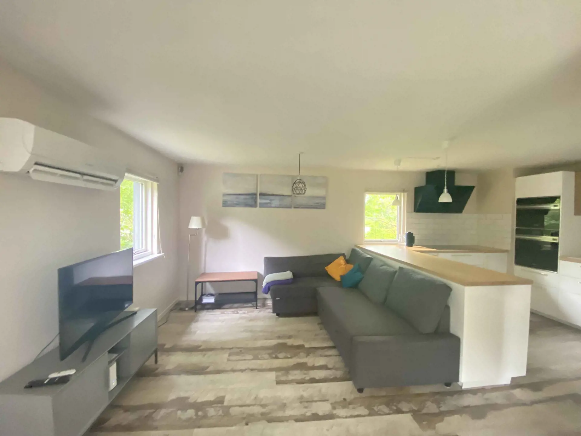 Die schöne Küche des Hauses steht in offener Verbindung mit dem Wohnzimmer. Die Küche ist neu eingerichtet und verfügt über einen Geschirrspüler und eine Mikrowelle. Im Wohnzimmer gibt es einen Chromecast-Fernseher. Es steht auch ein Hochstuhl zur Verfügung. Vom Essbereich aus gibt es Türen auf die überdachte Terrasse. Das Haus verfügt über eine Wärmepumpe.