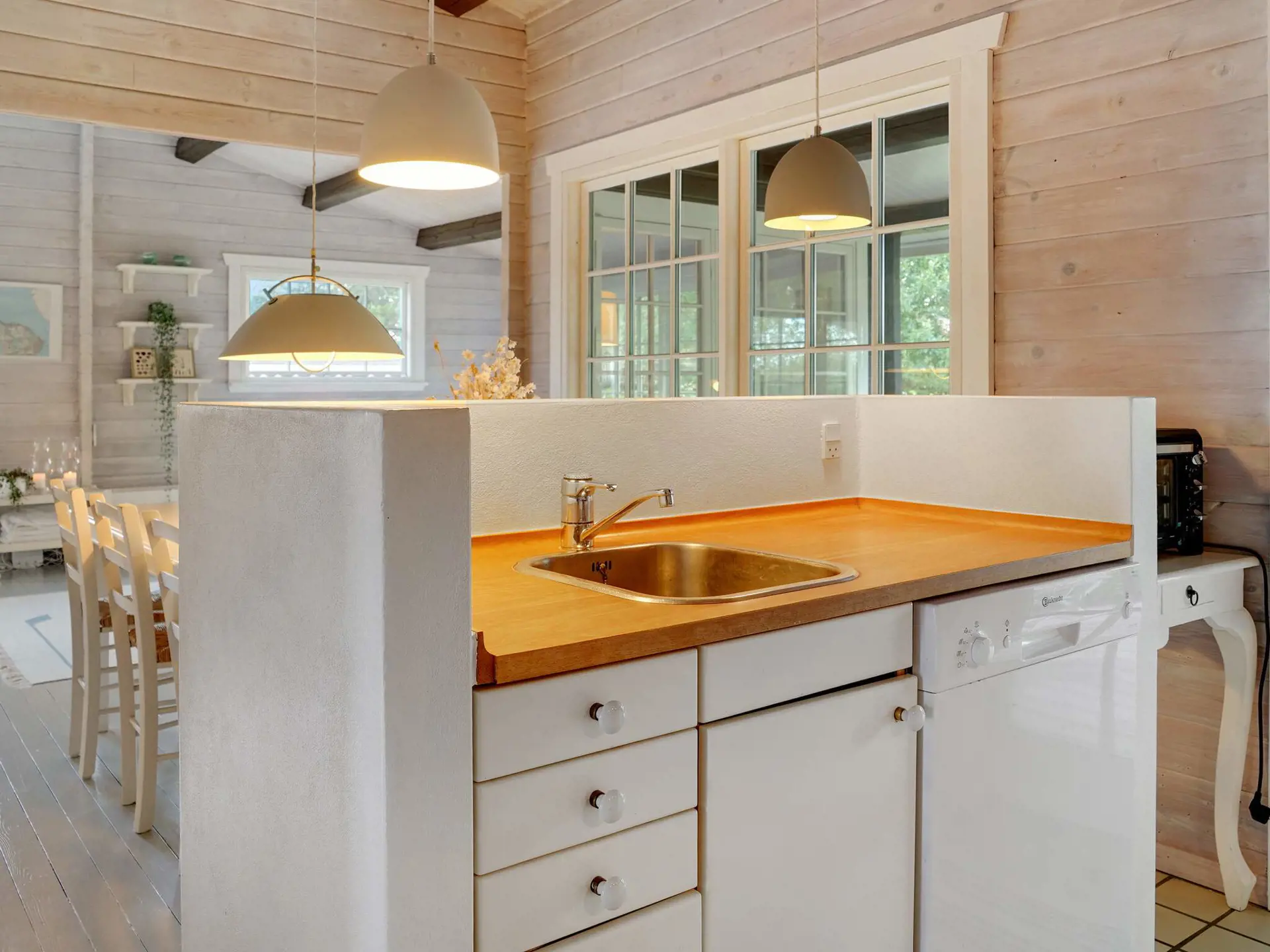 Im Haus gibt es ein großes Wohnzimmer mit Kamin sowie einen offenen Küchen-/Aufenthaltsbereich für das Familienleben. Eine klimafreundliche Wärmepumpe sorgt bei Bedarf für angenehme Erwärmung. Zur Küchenausstattung zählen u.a. Cerankochfeld, Geschirrspüler, Dunstabzugshaube und Kaffeemaschine. Freies WLAN zum Surfen im Haus.