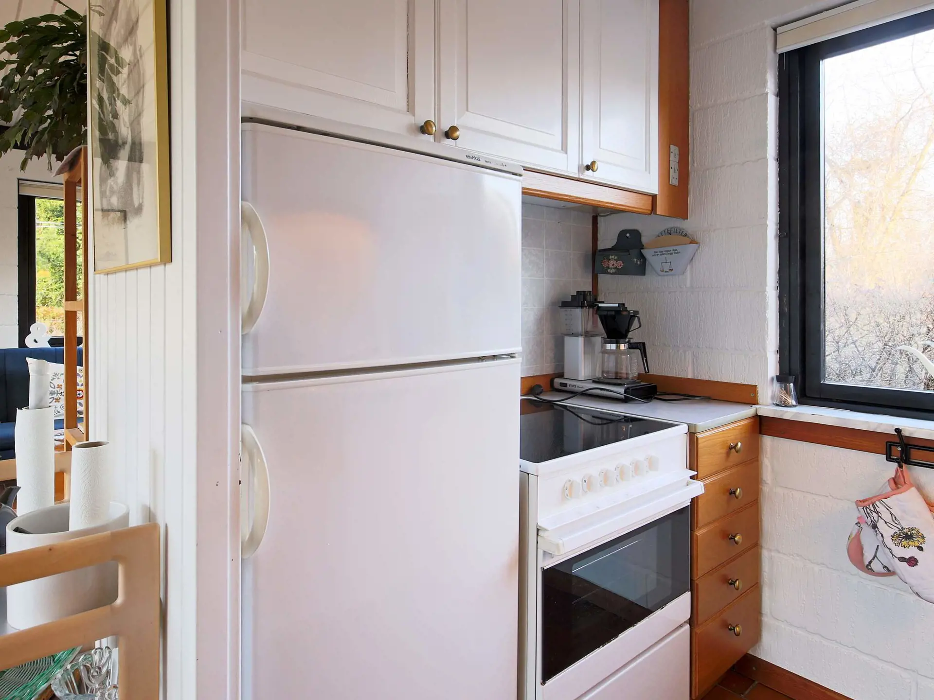 Ferienhaus in der Nähe von Smidstrup Strand, mit großer, schöner Terrassenfläche auf dem Grundstück. Innen gemütlicher Küchen-/Wohnbereich für das Familienleben mit klimafreundlicher Luft-Luft-Wärmepumpe, Holzofen und doppelter Schlafcouch. Zur Küchenausstattung gehören auch Cerankochfeld und Geschirrspüler.