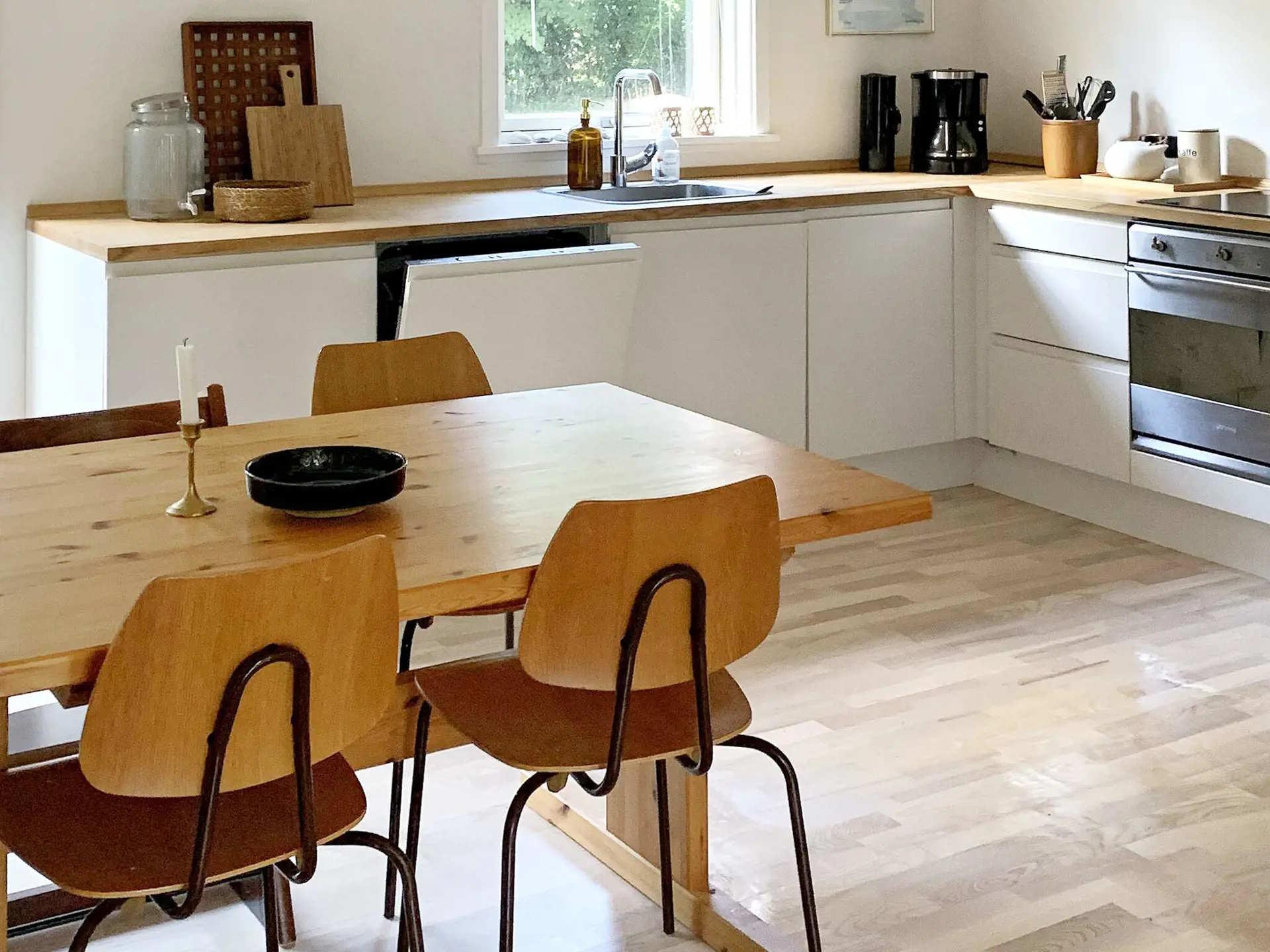 Im Ferienhaus erwartet Sie ein offener Küchen-/Wohnbereich für das Familienleben mit Zugang zu zwei schönen Terrassenflächen mit Gartenmöbeln und Grill. Dort können Sie die Sommertage ungestört auf dem gut abgeschirmten Naturgrundstück genießen.